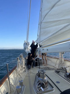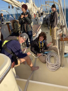 We started the day with the soothing tune of Who Let the Dogs Out. Cali, Miles, Liam, Sean, Amanda, and I were driven out by Anna for our Polar Plunge. Liam and Sean were finishing open water and did so successfully (yay). Cali, Miles, and I were working on skill circuits just below the thermocline and got some good practice in sediment land. Once we were back on Argo, we were able to dethaw with warm showers. Students then went into a Leadership lecture led by Hilary and Caroline. Staff went into the chart house to work on making new fall lines and matts for Argo. Afterward, students had a science lab to learn about the science equipment we have on board for their research projects. We finished passage prep and got final shore time in Cartagena before Amanda took us off the dock (wooo). Daisy and Gabby lead our staysail raises, and we set off into the sunset towards Almerimar. It was much appreciated warm soup for dinner (Thank you, Erik, Joe, and Sean), followed by our squeeze question for the night: “If the person to your left was an animal, what would they be? No explanation allowed”. My favorite answer was Ostrich. To fit the theme, I will not give an explanation why. Watch Team 3 (Cali, Daisy, Hilary, Liam, McGee, Rob, Xavie), or as we call ourselves, World Wide Watch (T Dubs for short), spent a lot of time studying for their Marine Biology Exam, which gave Will and l some fun time on the helm.