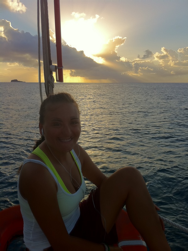 Since we had loads of free time today, most of us spent the day relaxing or catching up on sleep. Half of us (including Jack) began the day with a dive at 6:43 am to complete the navigation portion of the advanced diving certification. Some of us were successful in the compass usage, while others struggled slightly. Afterward, we had a short Marine Biology lecture, followed by a lab that involved Skittles. Most of us slept or worked on homework before lunch while the rain was dumping and the wind was howling. Once the sun came out, people went to an island close by to catch some rays, but I slept and pestered Katherine. Showers were glorious, and dinner was scrumptious. Now it’s time for Eric to teach us about seamanship.