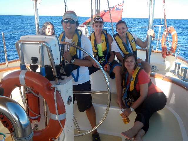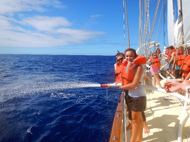 Today started off with normal watches: watch team two from 8-12, watch team three from 12-4, and watch team one from 4-8. My watch, watch team one, was lucky enough to watch the beautiful sunrise and think about how lucky we are to be able to have this experience and to experience it together as the Argonauts. We have all had a relatively busy day aboard Argo. After a delicious lunch and lunch clean-up, we had class; first was OCE (oceanography) and then SLD (Student Leadership Development), where we were told to write down and discuss, if we wanted to, our strengths and weaknesses. For some, like me, this exercise was difficult, but we were able to learn from each other and think of new strengths or weaknesses that we have. After SLD, we had a how-to presentation by Helen about toning. Straight after the class finished, and we were beginning to pack away our laptops and files, we were faced with a very loud fire alarm drill.