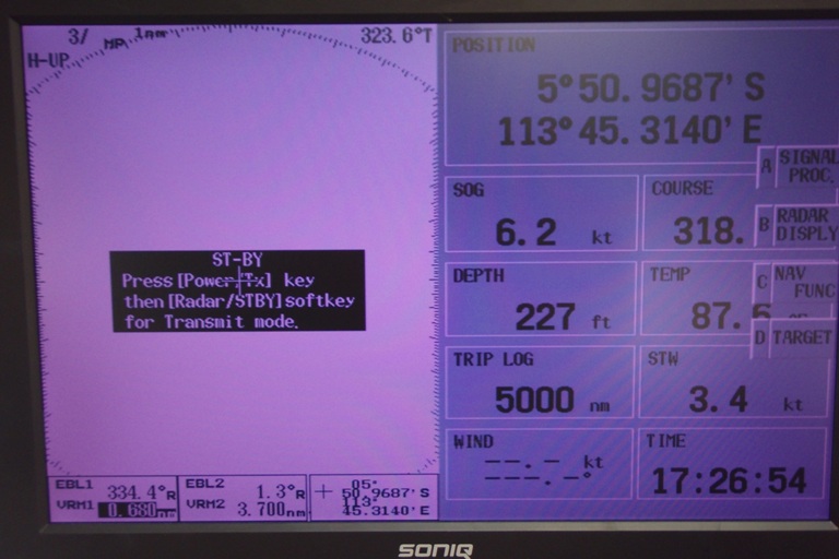 Today was a great full day of passage. This afternoon, we hit the 5000-mile mark. Something all of us have been looking forward to. Not only did we have the 5000-mile mark to celebrate, but it was also St. Patrick’s Day and Judy’s birthday aboard Argo. The weather was very nice; we hadn’t been sailing, but the sun had been out. All of us shipmates are much tanner than when we started this adventure 61 days ago. We are all looking forward to our trip to the Orangutan Reserve, so hopefully, it will be as cool as we are expecting.