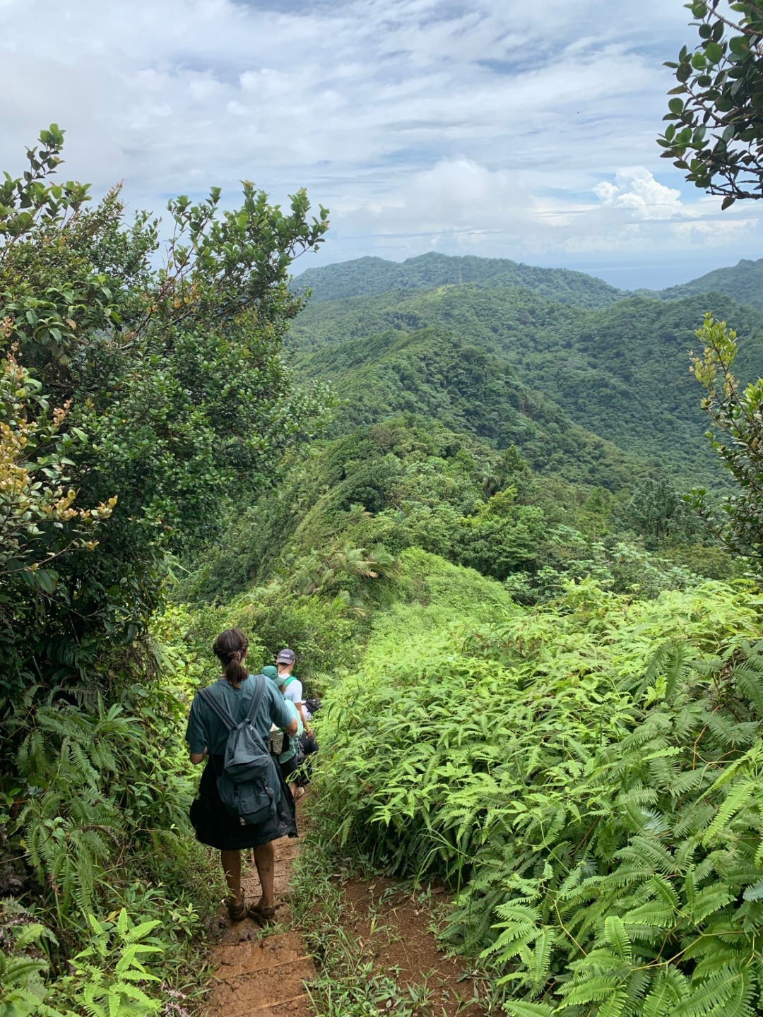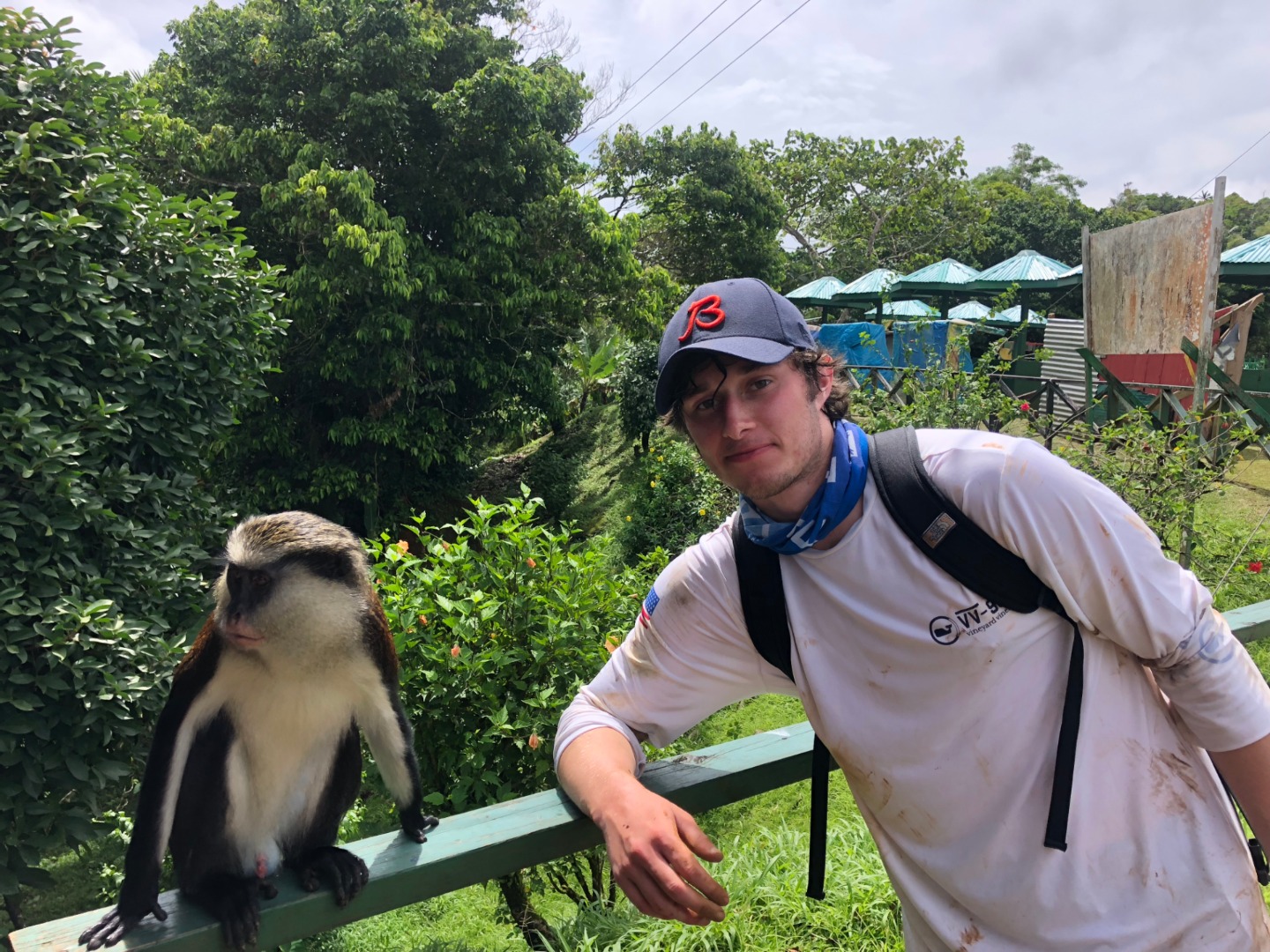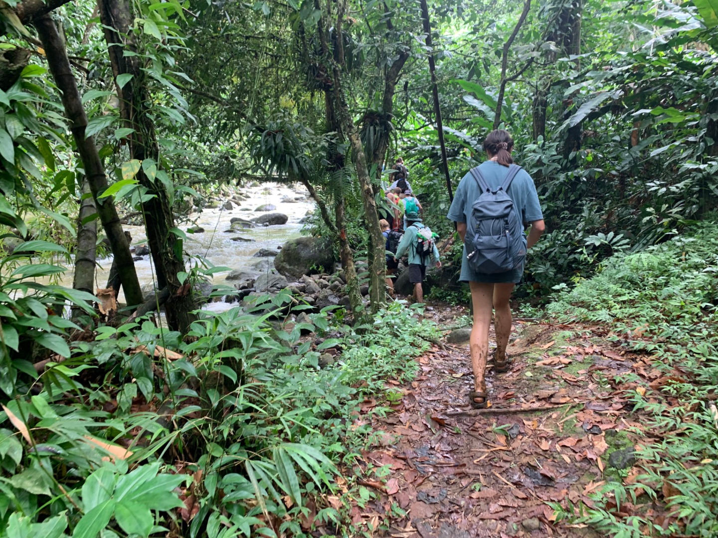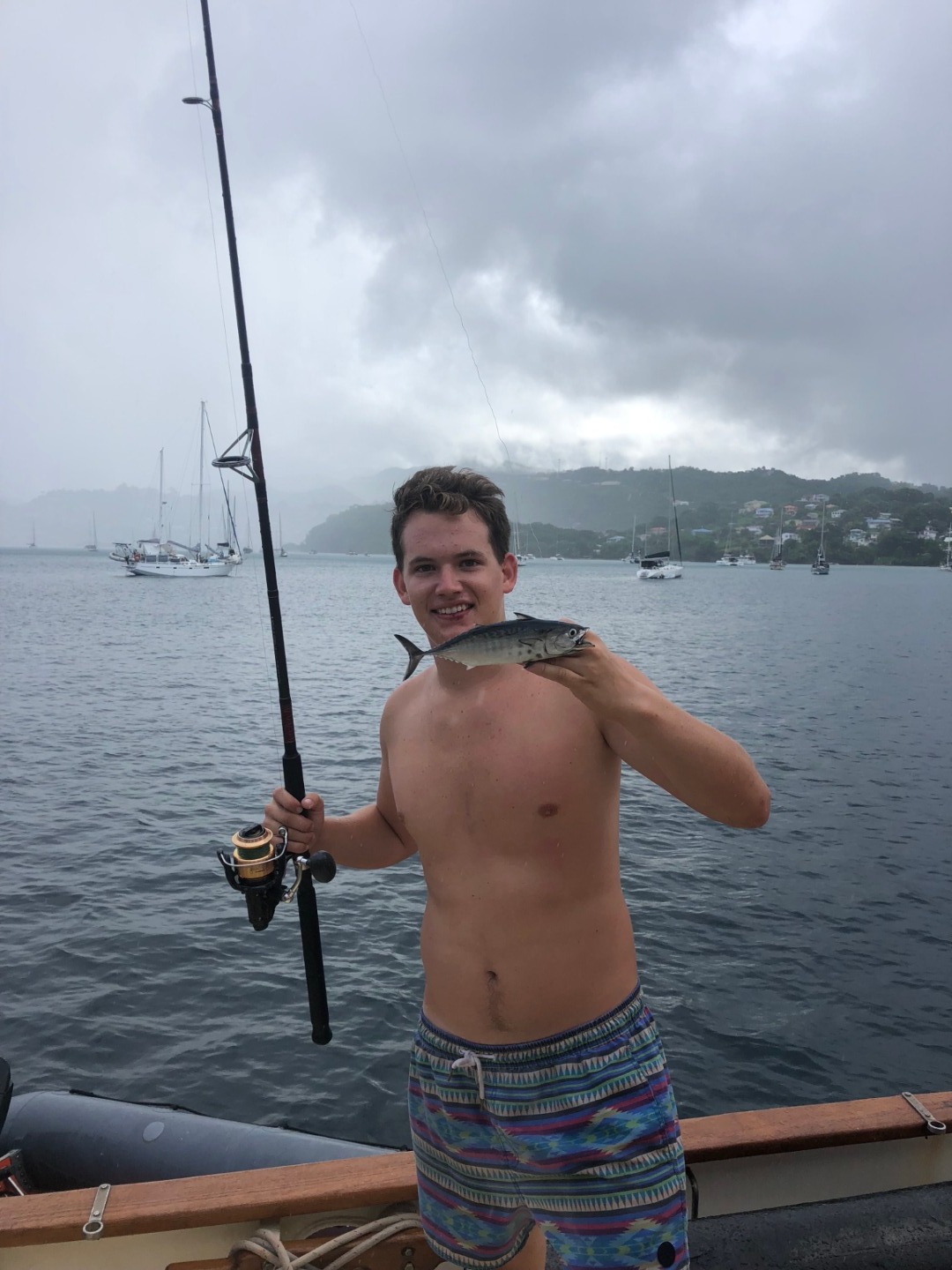 This morning as skipper, I had to wake everyone up, so I decided to play Brit Higgins “Winter” as loud as I could through the speaker. It started the day off on a great note because I watched multiple people go from sleeping to singing along in a matter of seconds. This tune is on apple music; y’all should give it a listen. After we brushed our teeth and ate breakfast that consisted of mini croissants and yogurt, we took to the dinghies and, through the pouring rain, headed to shore. We found shelter in a nearby restaurant and waited for our taxi. After a 30 minute ride, we were at the trailhead of Mount Qua Qua, all of us very unsure of the amount of mud we were going to face. After 5 minutes of climbing, we were in past our ankles. This did not stop us from reaching the top. We did have some fallen crew members along the way. Matt, being the first down, fell right in a puddle and hopped right back up and explained how the mud was healthy for his skin, and he was happier because he didn’t have to worry about getting muddy any longer. Next was Amy, who then led to Miranda falling and a chain reaction of butt sliding. Overall the hike was a very enjoyable mudslide in which we did reach the top of Mount Qua Qua. Next, we walked a few miles and met our guide for the waterfall tour. He took us for another short hike. When we came to the waterfall where we were all excited to clean off the mud and jump in, after all, but one of us jumped from the 30-foot waterfall, our guide showed us the natural waterslide. It was a bumpy ride. A group of us gathered at the bottom to watch people’s faces as they slid down. After we walked back to the road, we were picked up by a taxi. In no time, we were back on O-Star and eating yummy lasagna prepared by Carolyn and Jon.