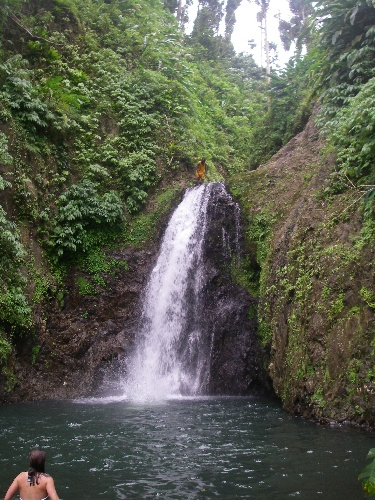 Today, we had an interesting and memorable day at the Seven Sisters Waterfall. First, our tour guide, Zebra, took us through the more bustling parts of Grenada. He was a humorous fellow who, at one point in his life, was a militiaman for the populous uprising against a socialist-leaning dictator. After the mini-tour, we arrived at the Seven Sisters waterfall. We hiked down to the site, found our local guide, and climbed to the top of the waterfalls. After this, we proceeded to jump over each waterfall, culminating in the final jump, which was around 40 feet high. All of the group participated, which shows how truly courageous we are. Everyone enjoyed the experience, and I’m sure we all will remember it for the rest of our lives.