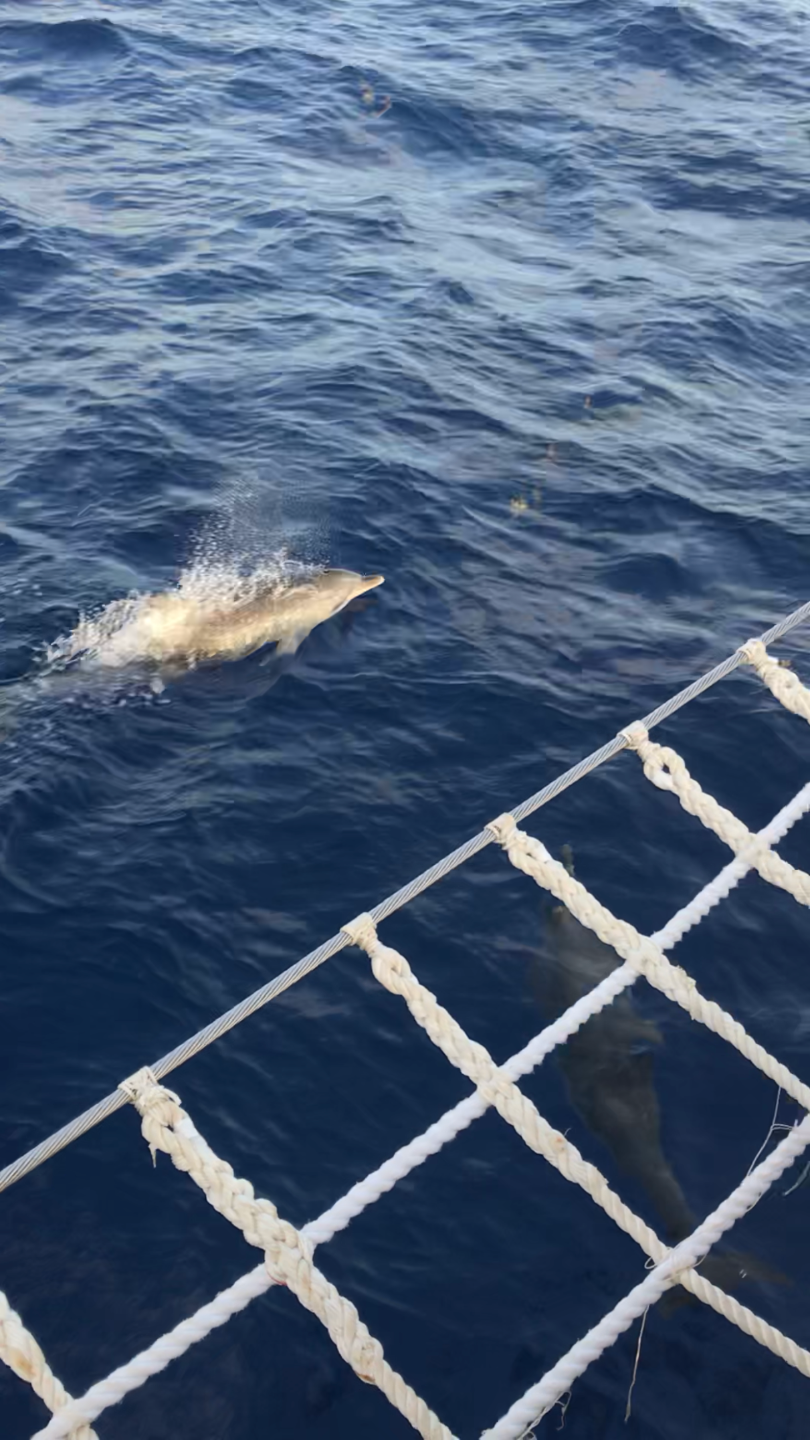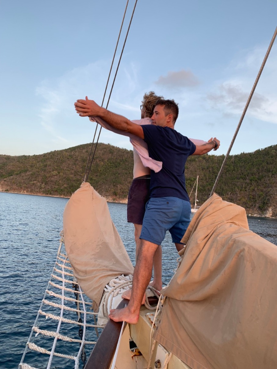 We woke up to cereal or oatmeal while completing the last leg of our watch team for our passage from Saba to the BVI. One of the watch teams even got to see a pod of dolphins chasing the boat off the bow, which was a lovely surprise. Once arriving and getting on a mooring ball, we dinghy-ed over to the historically known “baths,” a rocky area with huge boulders to jump off of and natural baths. After exploring, taking photos, and swimming in the baths, we quickly got back on board to move to the channel where the wrecked RMS Rhone ship lies. This was an old mail ship that got caught in a hurricane back in 1867 but now is home to a diverse reef we can enjoy. This was our last dive but one of the coolest since we saw a turtle, a shark, and lots of fish living in this ecosystem. We moved to Great Harbour Peter Island for the night, had dinner, and celebrated one of our amazing instructors, Amy’s birthday! We helped make a cake, enjoyed that while watching the amazing sunset (I surely will miss), and are now completing our Seamanship exam to become IYT competent crew! It was an eventful day, jam-packed with activities. Still, thankfully we have such an enthusiastic team that hustled and worked together so we could experience everything planned in the itinerary.