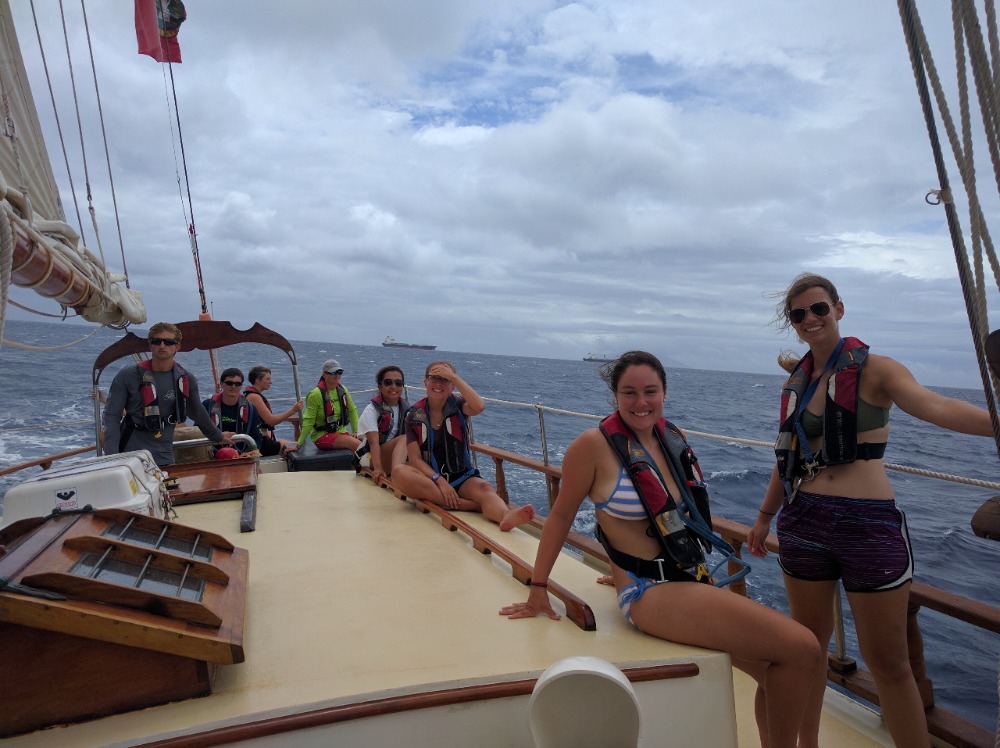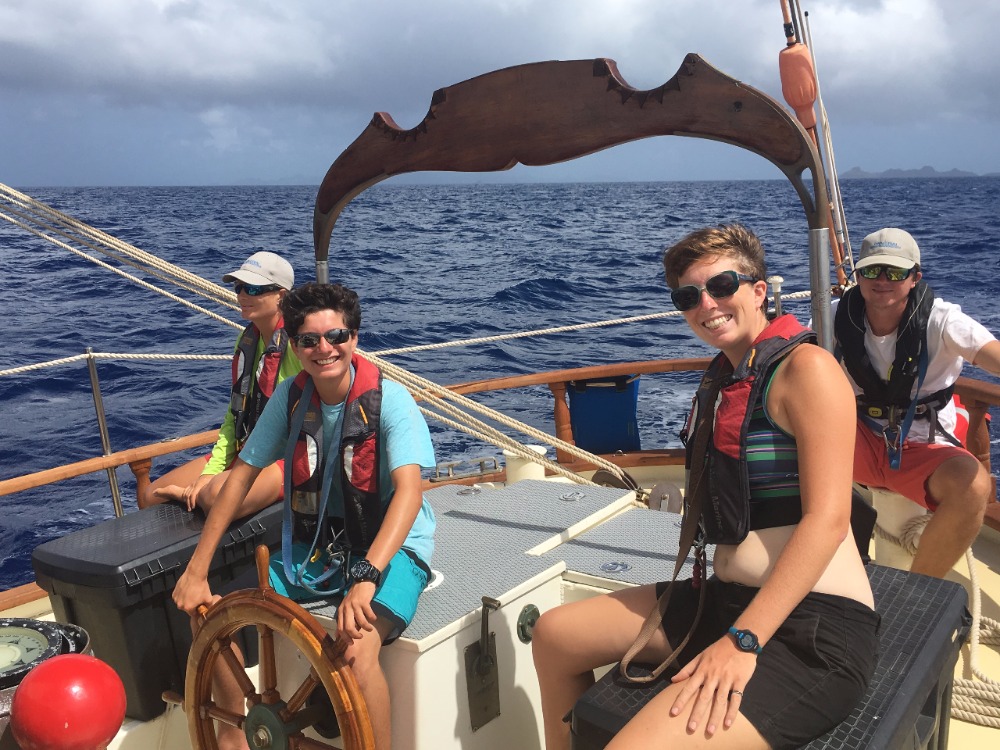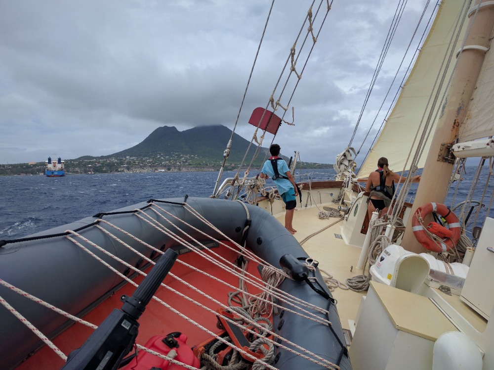 Today we said adieu to our last French island, St. Barth, and made our way to St. Eustatius, aka Statia. After I very cruelly woke up the crew to the sound of the Marseillais, breakfast and passage preparation began. Again, we have another example of a relatively relaxing day, with the only class-related event being the Divemasters finishing their skill circle, meaning that they are nearly done with their certification. While on our sail to Statia, the mainsail actually managed to tear slightly, and it is not clear what will be done about it at the moment. However, I would hope that we can fix it soon so we can travel under only sail power like we have been doing recently. Dinner was very nice, as today’s head chef made cottage pie, a personal favorite of mine. Tonight, for the squeeze, I decided to ask everyone to tell me the funniest thing that had ever happened to them, and I am happy to say I was not disappointed. Tomorrow we’ll be off doing some diving, and I’ll only have one dive left to get my advanced certification.