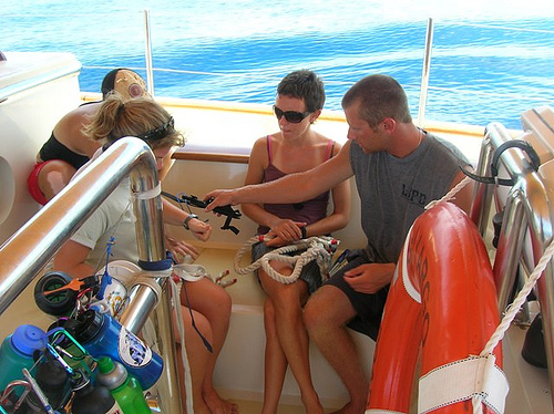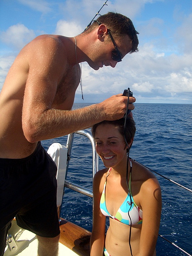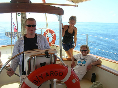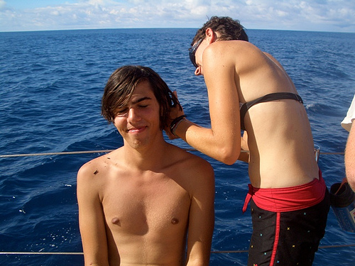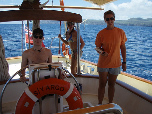Today, Argo’s crew awoke early to breakfast of cereal and oatmeal. After breakfast, we raised anchor and headed for Puerto Ayora, 40 miles away. During the passage, the crew learned to splice lines; some worked on their marine biology projects, and others just enjoyed the sights. Also, during our sail, the few shipmates who chose to sacrifice their hair to King Neptune at the equator learned they needed sunscreen on their scalps. Once anchored, the crew prepared for dinner and swam in the Pacific. Our schedule for Santa Cruz has been confirmed. The crew is excited for 100-year-old tortoises, hammerhead sharks, penguins, blue-footed boobies, marine iguanas, and all the other treasures of the Galapagos.