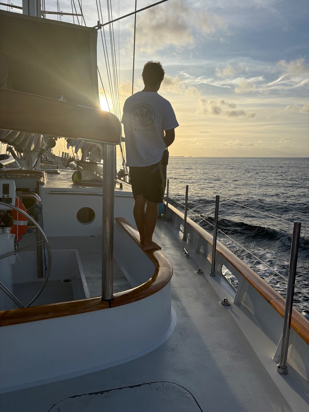 I stayed behind – along with Maya and Morgan C- in order to get some much needed rest and get some homework done. Once everyone got back, we left our little slice of heaven in order to head East so that we could make it to an island with a village for shore time tomorrow. While on our short passage, we learned how to measure distance, time, and speed in seamanship, which was actually pretty cool and fun. We also got to spectate Maya L and Harry go through a warzone in the galley – they locked in hard to give us one of, if not the best meal that we have gotten so far: garlic bread (with garlic that Jay chopped), Mongolian chicken, and rice. Doesnt sound like much, but it was done RIGHT and took a lot of work. Restaurant quality, if Im being honest.