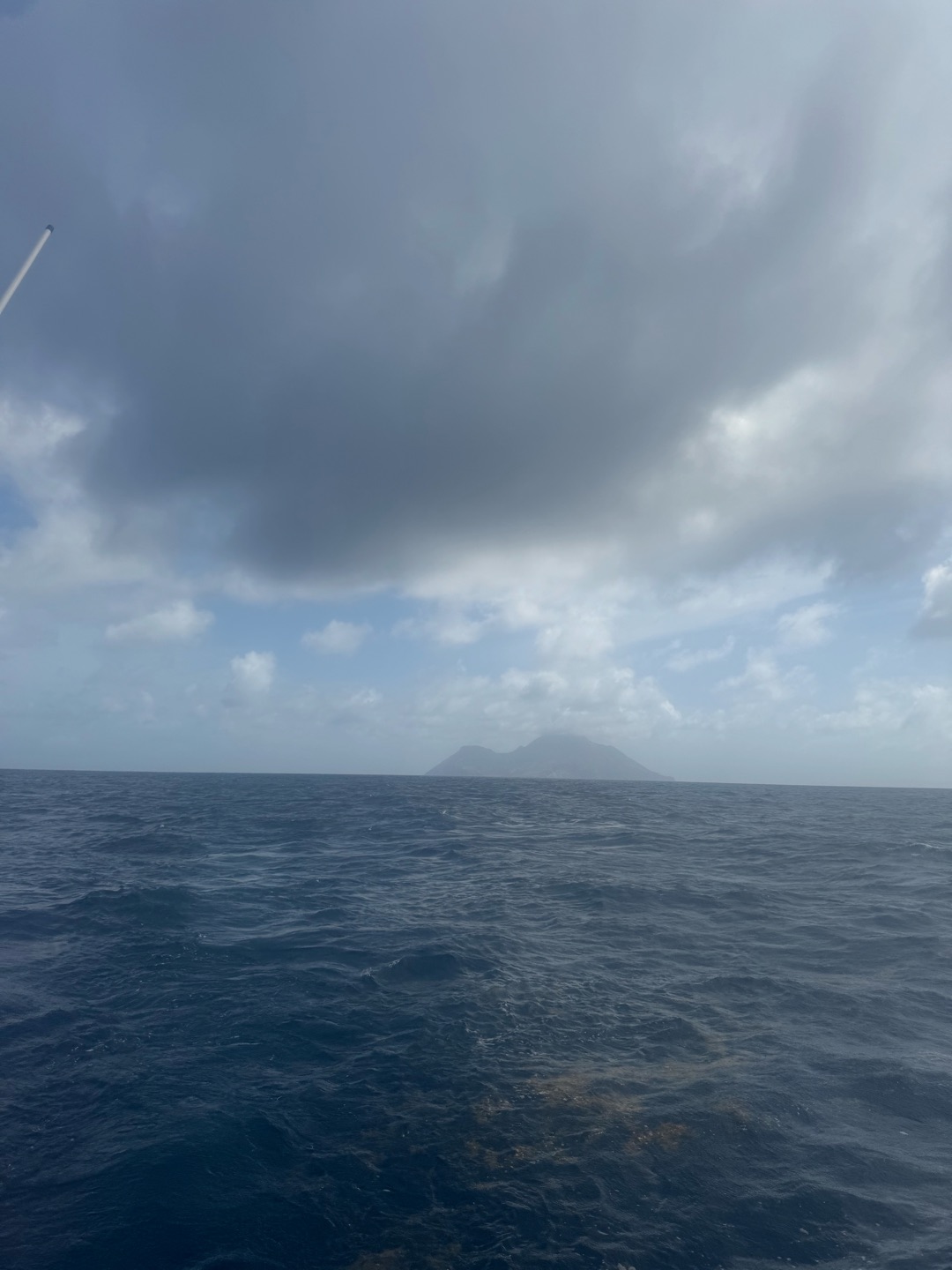 Watch teams were on around the clock today, as we were already at full motor sail at midnight. We plotted our location on the chart every hour and could see our course towards St. Barts, although it was far from being in our view. It was an upwind sail all day, so the waves often crashed over the bow of Ocean Star. On our way to St. Barts, we passed Saba and St. Martin. Most of the crew had recovered from the previous days seasickness, and folks were ready to eat. We had a fend-for-yourself rolling breakfast where fan favorites included Nutella and peanut butter on rice cakes, cereal, and hot tea. For the majority of the day, we were lucky enough to have not a single bit of land in sight. After beans, rice, and egg bowls for lunch, we gathered on deck for our first sailing lesson from Gabe.
