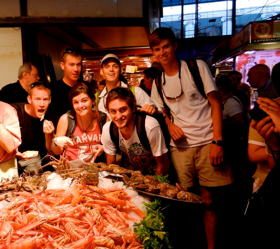 Today started off great with a fantastic wake-up time of 6:15 and a long train ride from Tarragona to Barcelona. We started off by visiting the aquarium, where we saw beautiful sharks, spotted eagle rays, penguins, and many other species. When the aquarium visit was finished, we all split off into different groups to adventure through the city, some of us going to see the Gaudi Cathedral (which at least everyone should try to see in their lifetime.) It is so beautiful, with 56 columns standing inside that branch out at the top like giant oak trees and stained glass windows that bring in just the perfect amount of sunshine. It is very beautiful! Also in the city is the famous Gaudi Park, which has a beautiful outlook on the entire city and a gorgeous view of the Mediterranean Sea. Also in the city is the Gothic Cathedral, which I didn’t get the time to visit, but many others did. Afterward, we came back to the boat for a delicious supper of Chicken Alfredo cooked by the staff. It was a beautiful, cool night, and I could already see the group forming into one big family. I look forward to the next 87 days with everyone! Erika