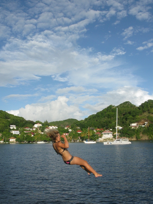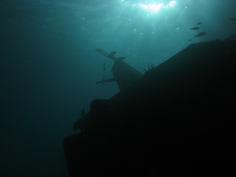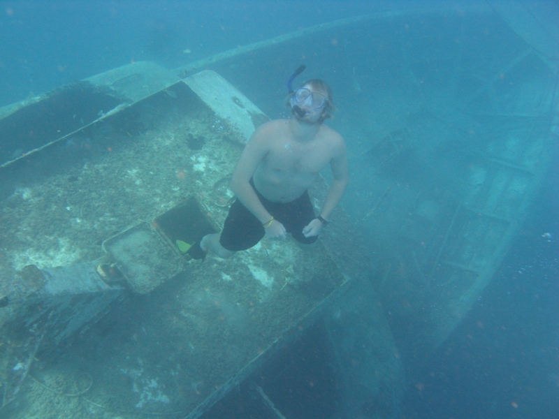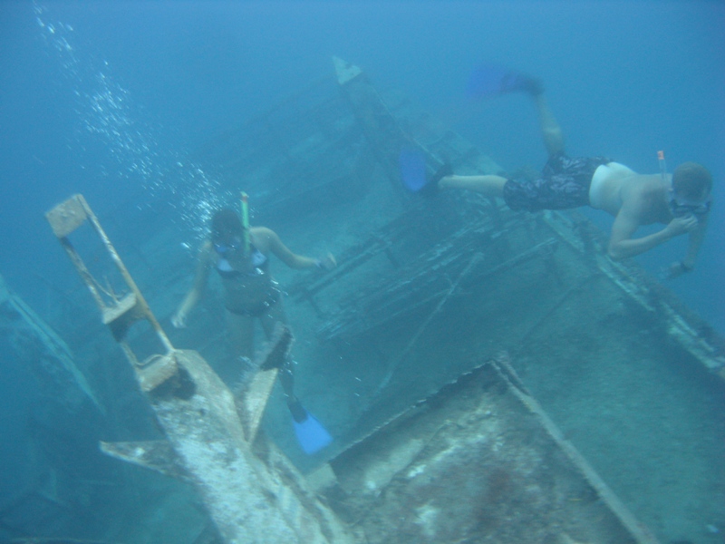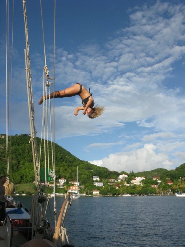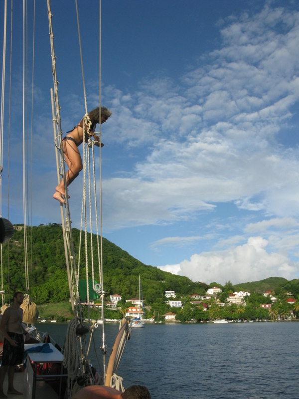 Today started off early for the guys, who were up at 6:45, hand washing all their smelly clothing from the rainy days in Dominica. After an OCB exam and an MTE class in the morning, the shipmates headed for shore to explore the beautiful and quaint town of Bourg des Saintes. The streets are lined with small shops and houses with red tile roofs, giving the town a look more akin to the Mediterranean than the Caribbean. In the afternoon, I, along with a few others, headed to a nearby shipwreck. Freediving in 20-35 feet of water, we discovered a very intact, fairly recently sunk inter-island ferry, which was a perfect playground for fish. Soon we were swimming all over the wreck, marveling at the sea life to be seen. After thoroughly exploring most of the wreck, we returned triumphantly to Ocean Star for an amazing meal prepared by Casey and Devin of ginger sesame chicken with rice and a delicious cabbage medley.