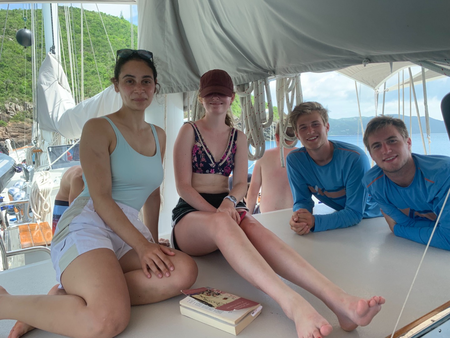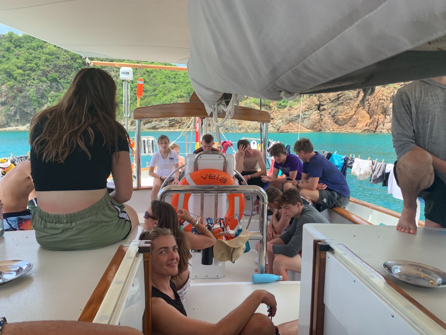 At 7 am today, just like every day, we started our day with some cereal – still feeling groggy from the night before! Around 8:00, we got ready for our day, preparing for the dive. We splashed around 8:15 and swam along the surface towards this beautiful rock face to descend on. On the dive, we saw many different types of coral and some cool fish. There was some brain coral and also some fan coral. We were hoping to see a trunkfish, although we did not see any. There were some other shipmates that also snorkeled around some caves for a while, playing some water games. Soon it was time for lunch. We had some sandwich wraps, which tasted great thanks to our chefs. After lunch, the second group of divers prepared and splashed for their dive. At the same time, the open water divers had finally finished all of their dives needed for their certifications. Once both the second group of divers and the open water divers returned, we were able to sit down for dinner, which was stir-fry, thanks again to the chefs. After squeeze and dinner clean-up, most of the crew joined in a card game below deck. Later on, we discussed our plan of what to do for the rest of our time in the BVIs before turning in for the night. Overall today, I had a great time chilling out for most of the day with my shipmates, looking forward to seeing Road Town tomorrow.