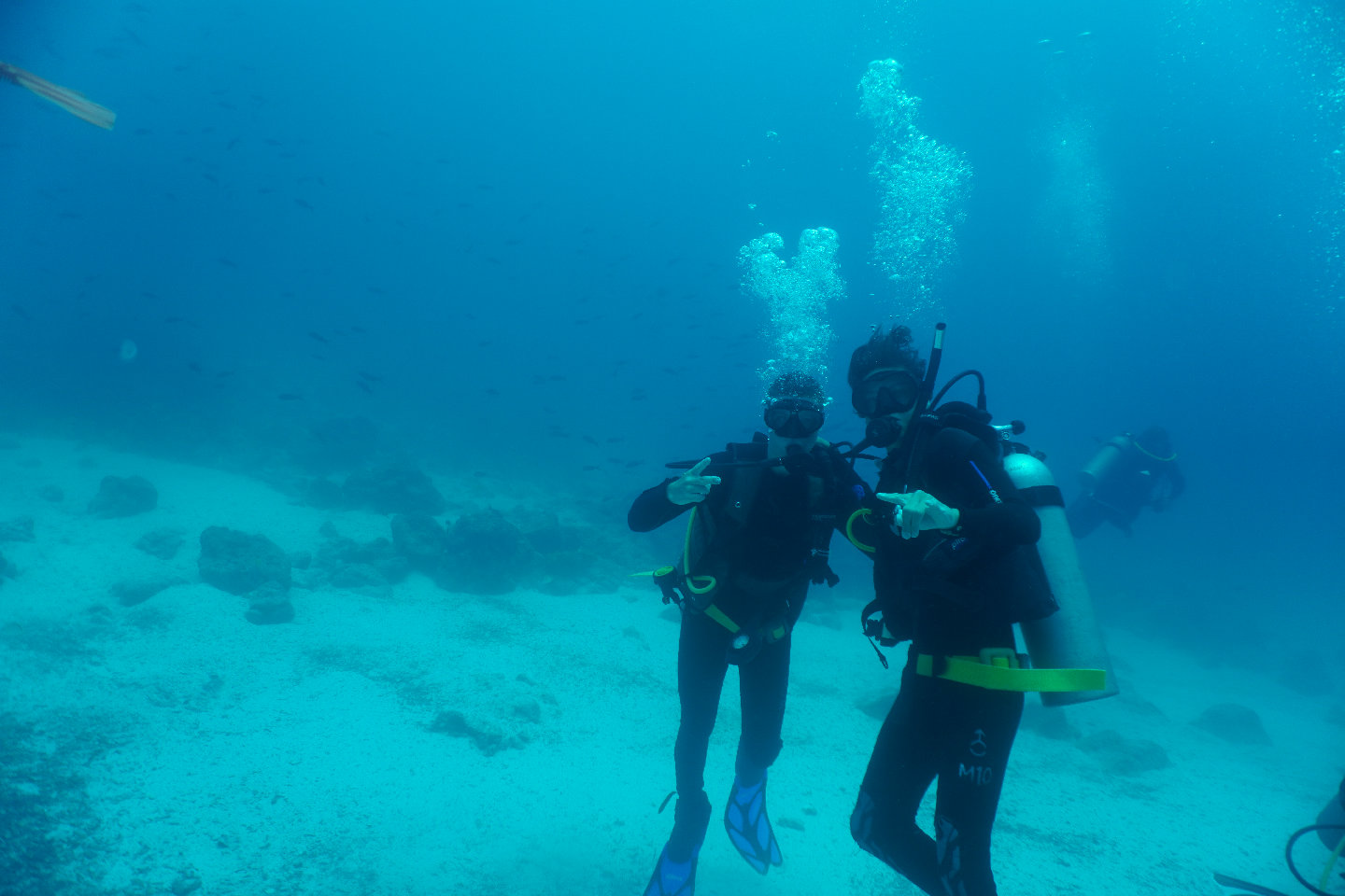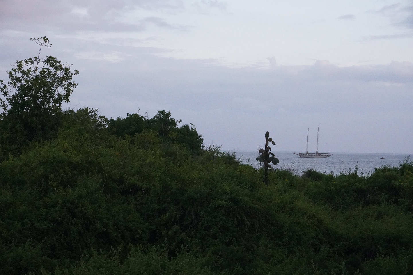 Hello all! It has been another magical day in the Galapagos. Everyone on board had a different adventure around the island. A group went to the North side of Santa Cruz to dive Gordon Rocks and Daphne Minor. Once again…the dives sounded amazing. The ocean here is FULL- mantas, eagle rays, hammerhead sharks, Galapagos sharks, puffers, triggerfish, sea stars, chromis, sea lions…the list goes on. Jack and Max had a bike adventure all over the town, finding sweet jungle alleys and popping some sick wheelies. Chance, Mike, Makena, and Anton Cafe hopped from place to place. Molly and Penelope helped Claire provision at a local fruit market in preparation for our coming passage to Nuka Hiva. Others stayed on board and had a relaxing day. Then the sun started setting, and the sky started glowing the most gorgeous pinka wonderful last sunset in the Galapagos.