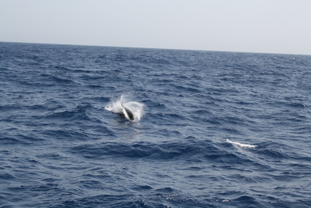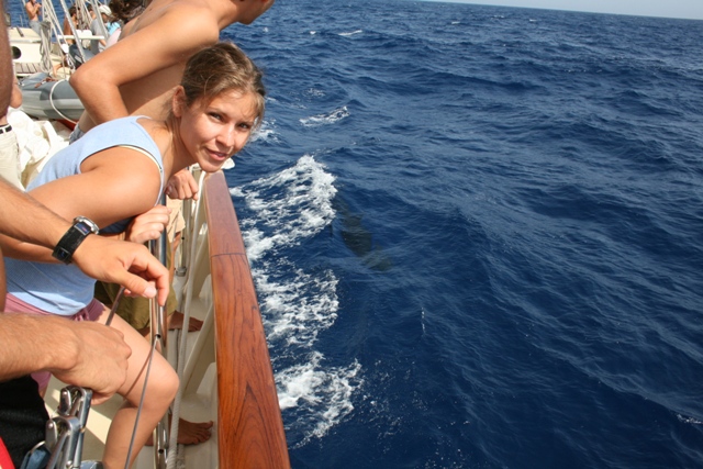 Today began like any ordinary day underway, but that soon changed. Everyone was awoken for lunch, after which we had an MTE class. Right as we were about to start, a Minke whale was seen off our port quarter, thus postponing class for a few minutes while a few of us ran up to check it out. Halfway through class, a pod of about ten pilot whales came upon us, and everyone ran on deck to watch the whales pass us. Some of the whales came within five feet of the boat, surfacing long enough for people to attempt snapping some photos. As we headed back to finish the class, we marveled at how cool it was that our class had just been interrupted because a pod of whales was passing by. That’s not something that happens every day. We finished MTE, and we were starting our PSCT class when Simon was called on deck because a small motorboat was approaching us waving flags. We soon realized it was a small, fifty-foot wooden boat full of refugees from Africa, we presume. We decided to help them out as best we could and gathered some spare food and water, which we attached to a buoy we had found. We dropped the parcel overboard and moved away from it a bit before the boat approached it and picked it up. They seemed grateful but were still waving at us. We realized they were holding up empty fuel tanks and probably needed gas, so we prepared a spare canister of fuel, and the shipmates gathered all the water bottles they could find to fill with more water. They also donated an abundance of precious personal snack food. Soon we had a very large and heavy trash bag full of more food and water, which we attached to the fuel container and several lifejackets. We dropped everything overboard and watched as the refugees struggled to get their boat started but were eventually able to pick up our second package. We continued on our way but contacted the Spanish Coast Guard in the Canary Islands to alert them of the boat and give them their position. A few hours later, we saw a search and rescue plane fly overhead, and shortly afterward, we were notified that the refugees had been found, and a ship had stopped by them and would wait until a tugboat could get to them. We heard that approximately 800 people flee Africa every day. As we enjoyed a delicious dinner and watched more whales swim past, many of us thought about what a different life the people of Africa must lead to have that many people trying to leave every day. We realized how truly fortunate we are onboard Argo, but also how unique of an opportunity we are having here.