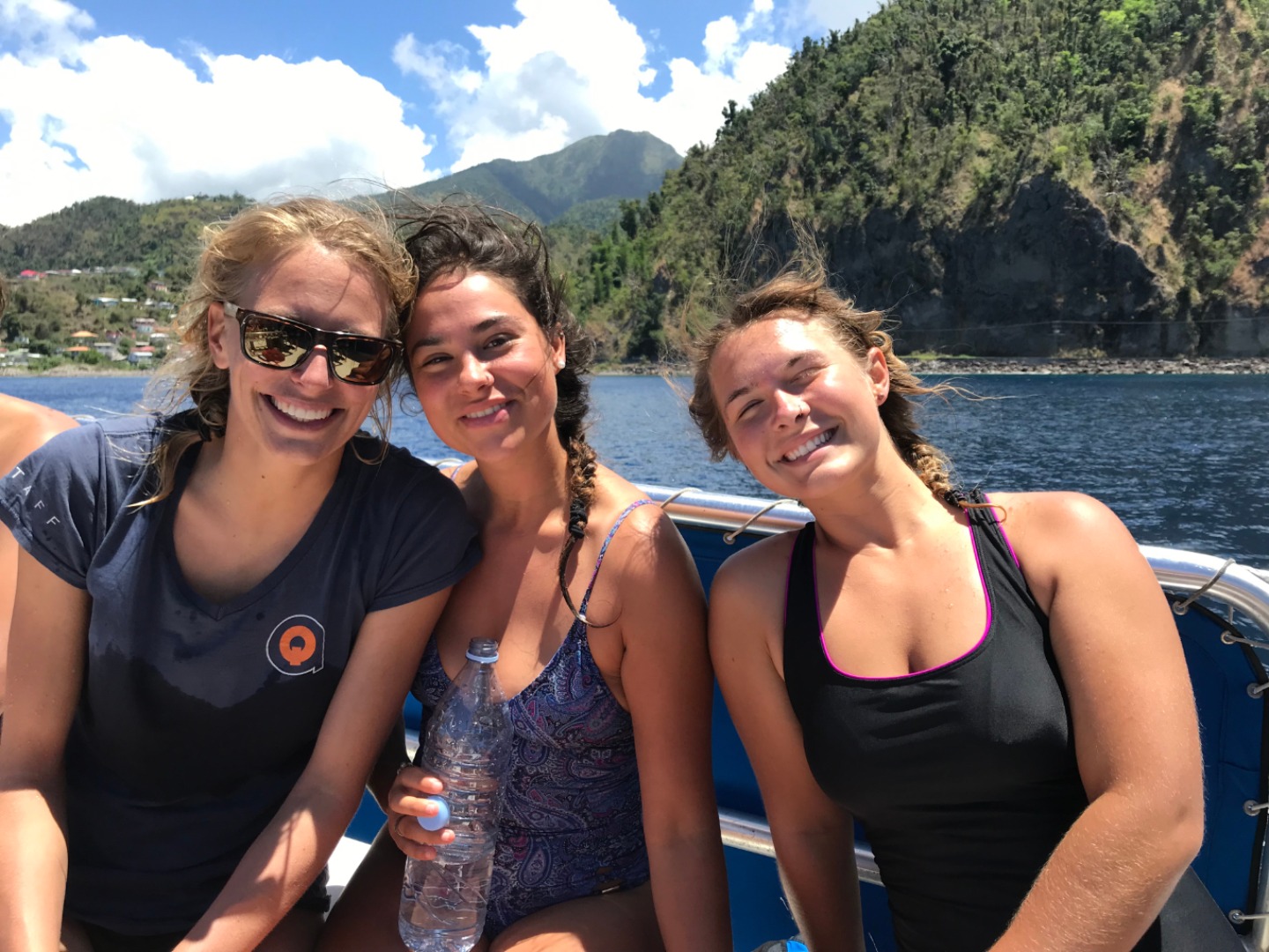 We woke up bright and early to set out for our two dives with Dive Dominica, who picked our dive bags and us up from the docks. Then we took a short but beautiful trip over to our first dive spot, L’Abem, one of our deepest dives yet! The beginning of which looks like a completely normal dive until we reached a sudden and seemingly infinite drop-off that was full of life and lionfish for our divemasters to hunt. It was also the location where most of us saw our first frogfish! The next dive was less deep but just as amazing, at the spot called “Champagne.” Well named for the small streams of bubbles that came from the ground and floated to the surface that seemed to surround us, a dive I would recommend going on if you ever get the chance. After we were sufficiently amazed by the dives of the day, we got to spend some time onshore, where many of us got some good burgers and wifi while others hit the town and headed to the barbershop. Following that, we had a yummy meal and had a little dance party while getting ready for our night out, which was a relaxing way to end the tiring day of diving.