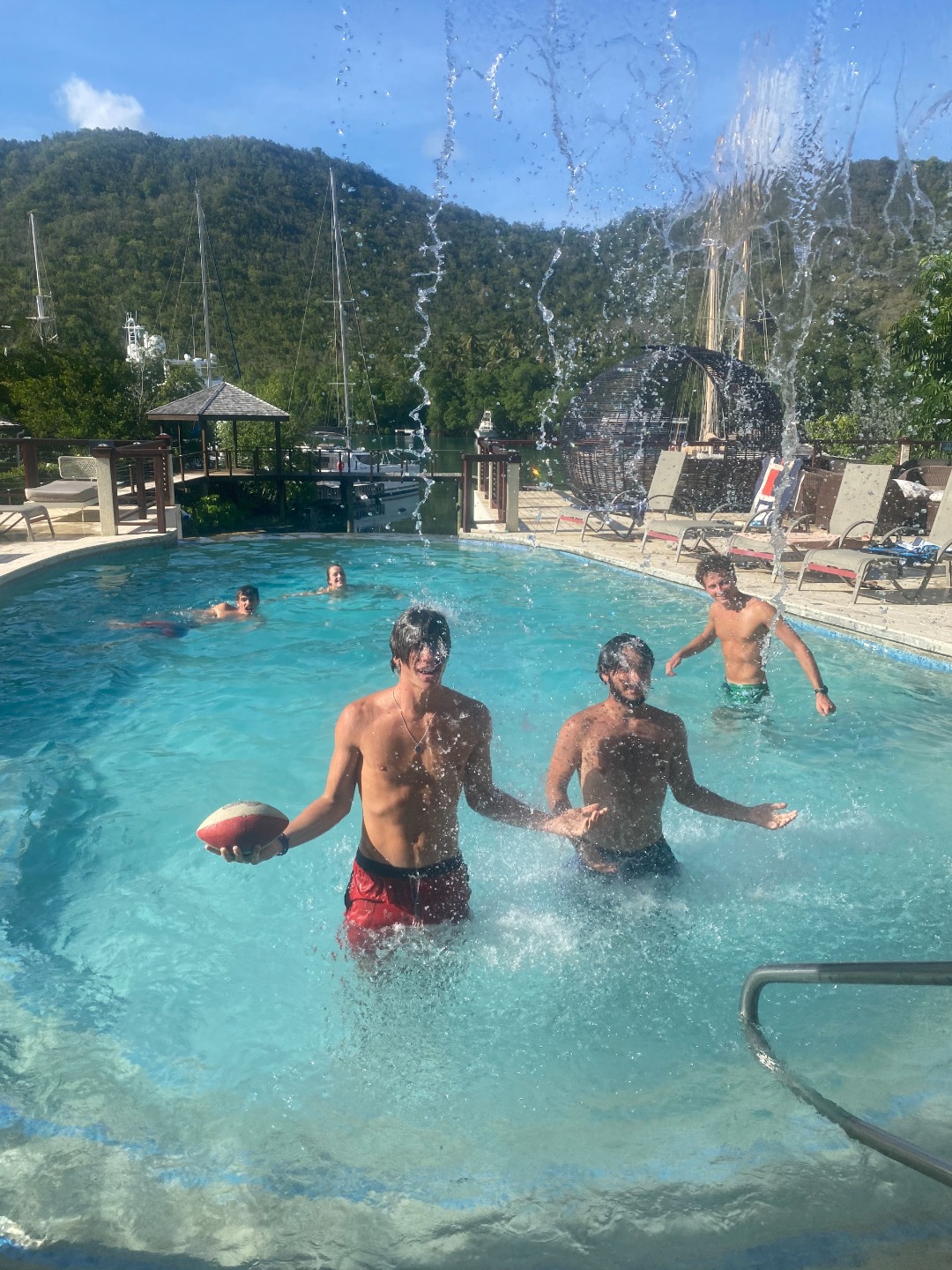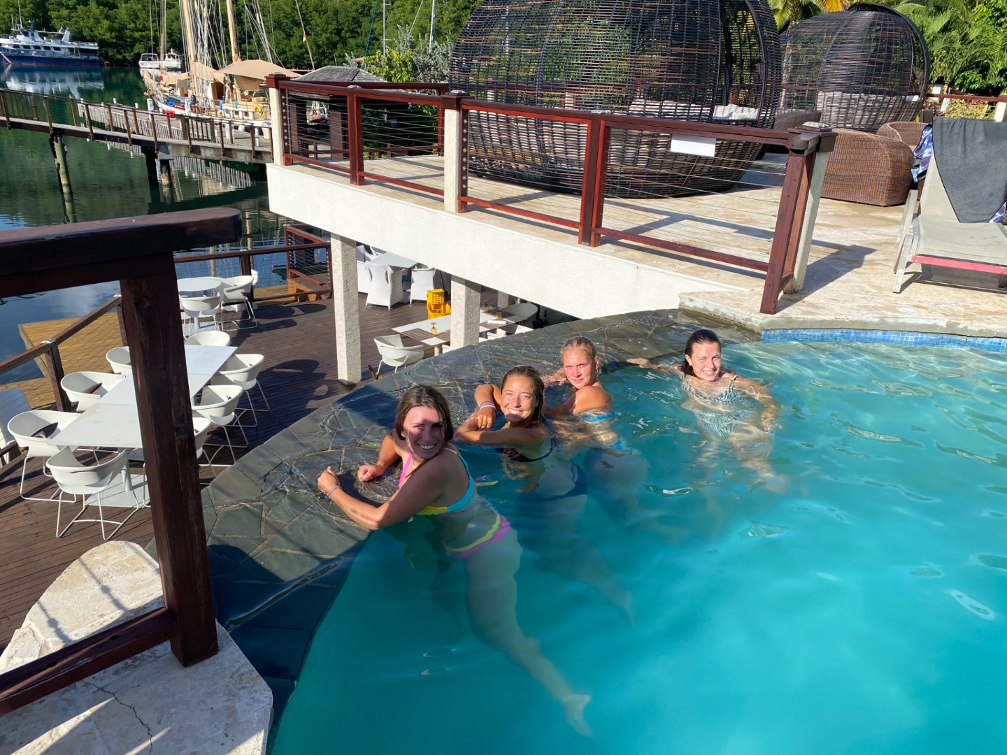 Later in the day, the chefs prepared spaghetti and meatballs for dinner, and we all decided to go to the hotel restaurant for dessert, which is where everybody (except for me :/ ) is right now. Between free time by the pool, shore showers, and dessert at a waterfront restaurant, we were all more than spoiled today. Anyway, we’re all very excited for our first full day in Saint Lucia tomorrow and also for the fact that none of us have an anchor watch tonight!!