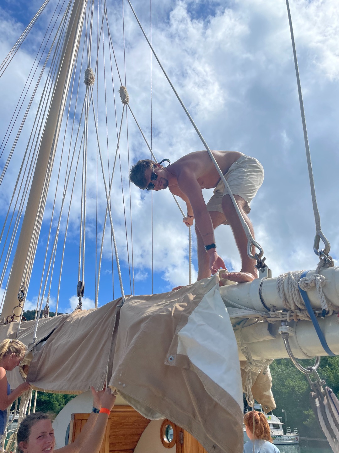 Pic 6: Grady putting the sail covers on