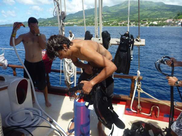 After breakfast, we started off the day with a marine bio lecture. Then, we split into a couple of groups; the three of us doing Rescue Diver (Lucy, Geraldine, and I) went down to watch PADI videos and review while the remainder of the students had free time to catch up on work or sleep. After lunch, the Rescue Divers went to run simulated rescues while the Divemaster candidates went off to do Divermastery things. The other students again had free time on the boat. Josh managed to get some windsurfing in. The Rescue Divers finished up their scenarios and took the exam for the course, all passing with flying colors. After dinner, we went to the beach to play pirates. Pirates is a modified version of the game Mafia. In pirates, everyone sits in a circle and closes their eyes. A few people are chosen as pirates, one as captain, and one as a medic. The pirates secretly choose who they want to kill. The captain guesses whether one person is a pirate and is secretly told if he is right, and the medic gets to save someone. After each round, everyone gets to vote on who they think is a pirate and make them “walk the plank,” at which point they are out of the game. It was very fun and filled with accusations, murder, and betrayal.