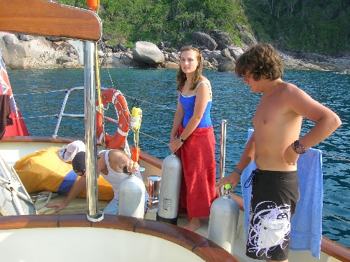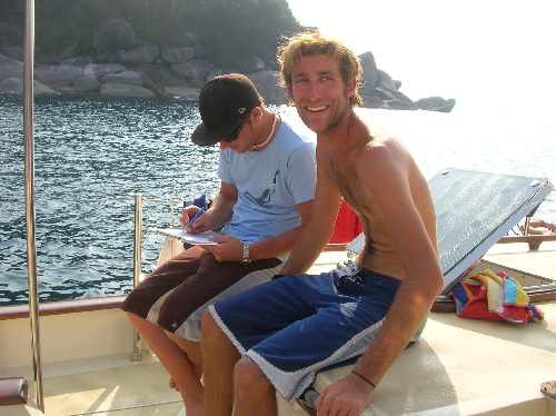 It was a fantastic day. The Open Water trainees are now officially certified and enjoyed their first dive on their own. Me, Mike, Annie, Ben, and Jill enjoyed a trek through the jungle on the island. Mike and I saw the opportunity to partake in some jungle base free-running and just couldn’t pass it up. Although the day was packed full of exotic and visually stunning activities, I could never quite shake the feeling of leisure. On top of all the good news, Abby got her 3rd rabies shot and is still not showing any symptoms!! We are all scratching backstays for wind for our passage back to Phuket tonight.