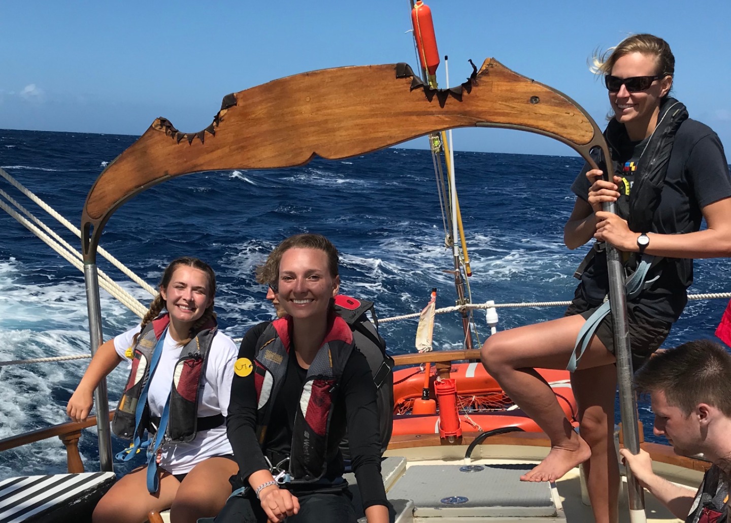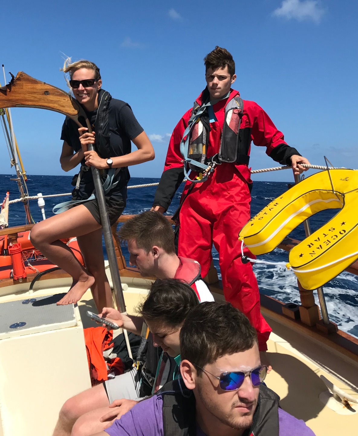 After a full night of Kyle making sure to keep us awake and talking on our 4 hours on 4 hours off watch schedule, the brilliant sunshine woke up watch-team two at 6:30. This was our first full day underway on our 3-day trek to Grenada, the spirits of watch team two still ripe from the shore time, and night out; we had in Nevis. Tina spent the majority of the day in the galley preparing an amazing lunch of eggplant parmesan hummus pitas for lunch and lamb korma and couscous for dinner. I will conclude this blog with a joke from the man himself, Steve (The Penguin joke division of McVitie’s)……. How does a penguin build its house? Igloos it together