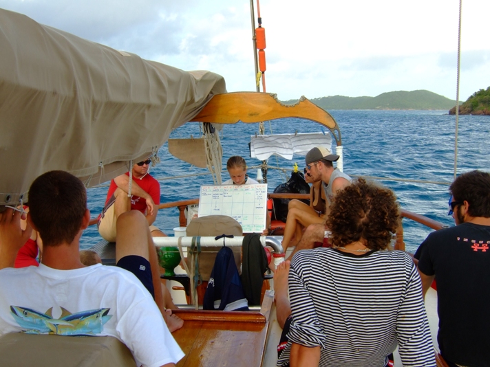 This morning began with all the shipmates organizing our upcoming week by democratically setting up our schedule and provisioning for eight days worth of meals, which I must admit made my stomach rumble for such culinary delights. After the meeting, we departed the Tobago Cays and made port at the quaint island of Mayreau. We all went ashore for a relaxing meal of fresh red snapper, chicken, and conch. Tonight entails another marine biology class while watching the beautiful Caribbean sunset over the bow.
