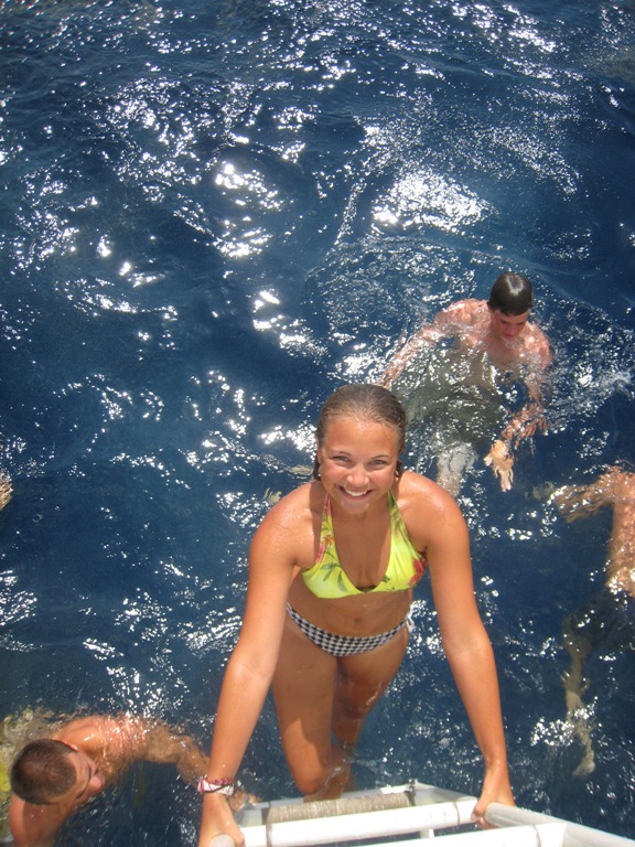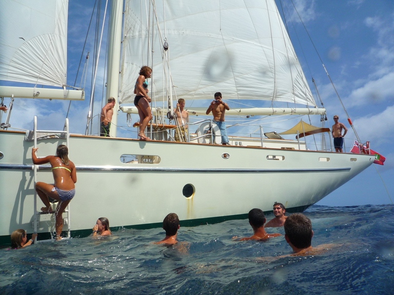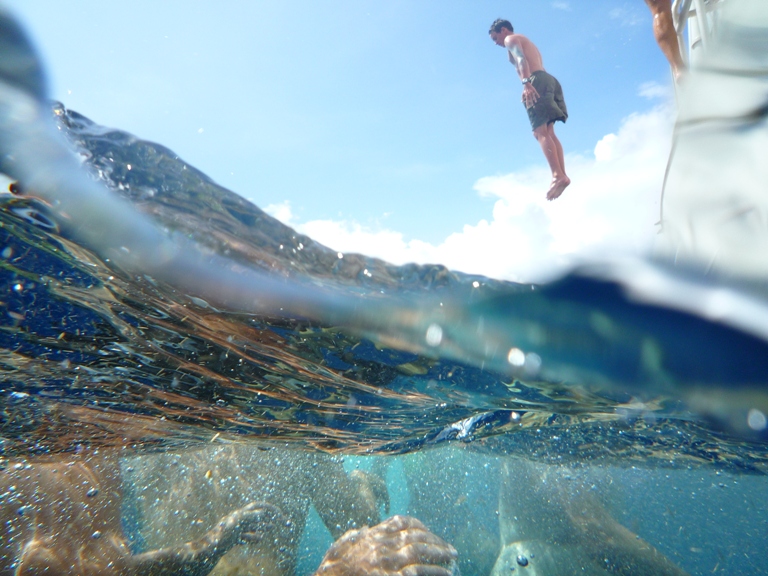 Although we are all aware that Captain Simon is a man of many talents, I never would have guessed that bread-making would be among those talents. We started off the day with a nice warm slice of homemade bread, compliments of our fearless leader. Delicious! It was another scorcher of a day today as we made our way across the Northern coast of Australia. The temperature was so hot that many of us were huddled in different areas of the boat, trying to find a small slice of shade. Early in the day, we had a visit from two dolphins who found enjoyment in swimming just underneath the bowsprit. After lunch and an OCE and MTE class, Simon moved so we could all take a quick swim in the ocean to cool off. The water was a beautiful shade of blue and had never felt so good! Everyone was feeling 100% better after our dip and was ready to continue on our journey westward. Although we are a bit sweaty and sticky, the crew remains happy and healthy!