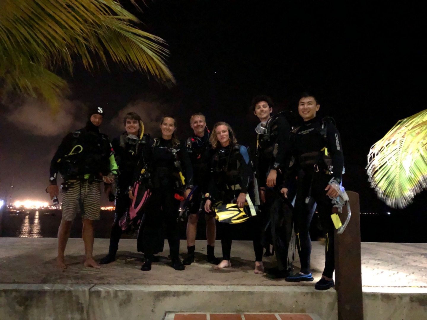 Update: The night dive was incredible! The divers had a particularly friendly and LARGE tarpon that followed them around, hoping the lights would scare up a bite to eat. Add to that eels hunting, crustaceans out and about, and lots of sparkly bioluminescence. It was a night dive to remember!