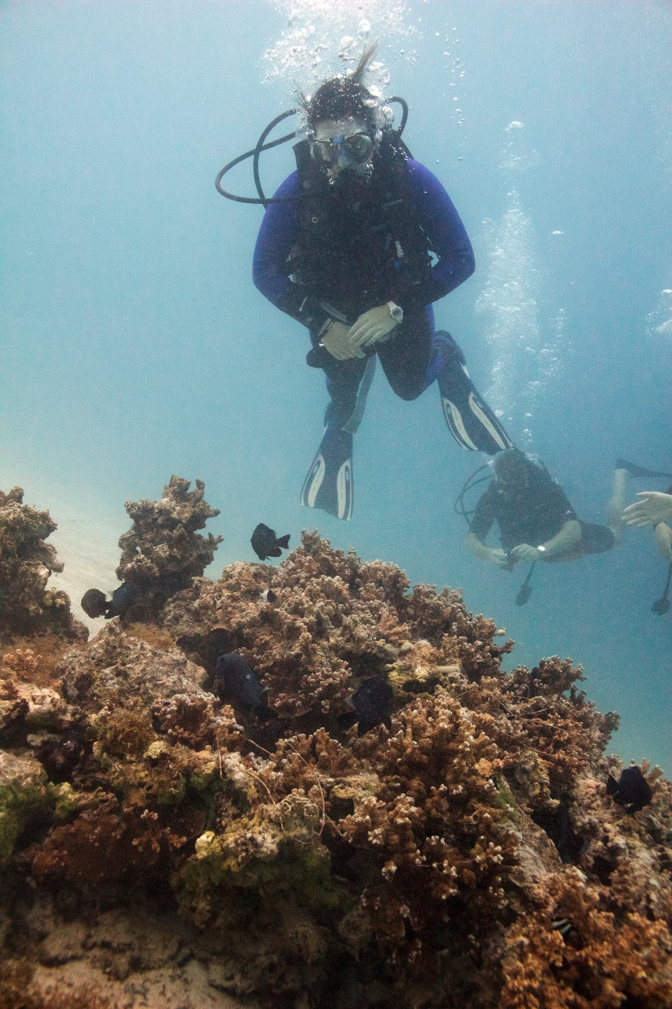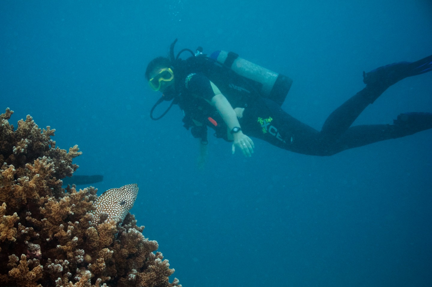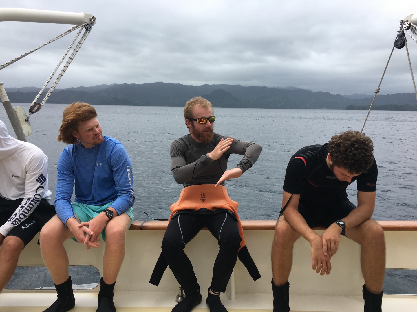 Today was our first full day of diving since leaving French Polynesia. We returned to the site of last night’s dive to swim through the coral with a little more visibility. Through the morning and afternoon, three dive groups headed out to the reef while the rest of the crew caught up on some much-needed sleep and studied for the afternoon’s VHF quiz. A plethora of fish was spotted on the dives, as well as sea turtles and an octopus. Huge thanks to Steve for running all the dive stuff today, and Stephanie and Bryant for helping make sure nobody wandered off underwater. This evening, the last two groups will complete their night dives. The water is definitely colder than we are used to on this trip, but it’s worth taking the plunge to see the beautiful bioluminescence and fluorescence underwater. Fingers crossed that tonight’s groups get clear skies and warmer waters.