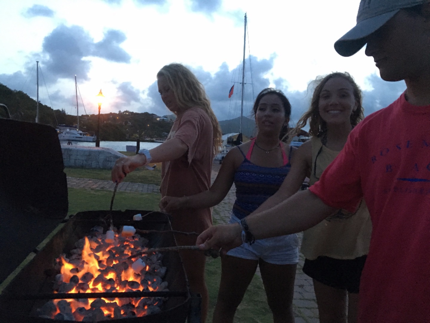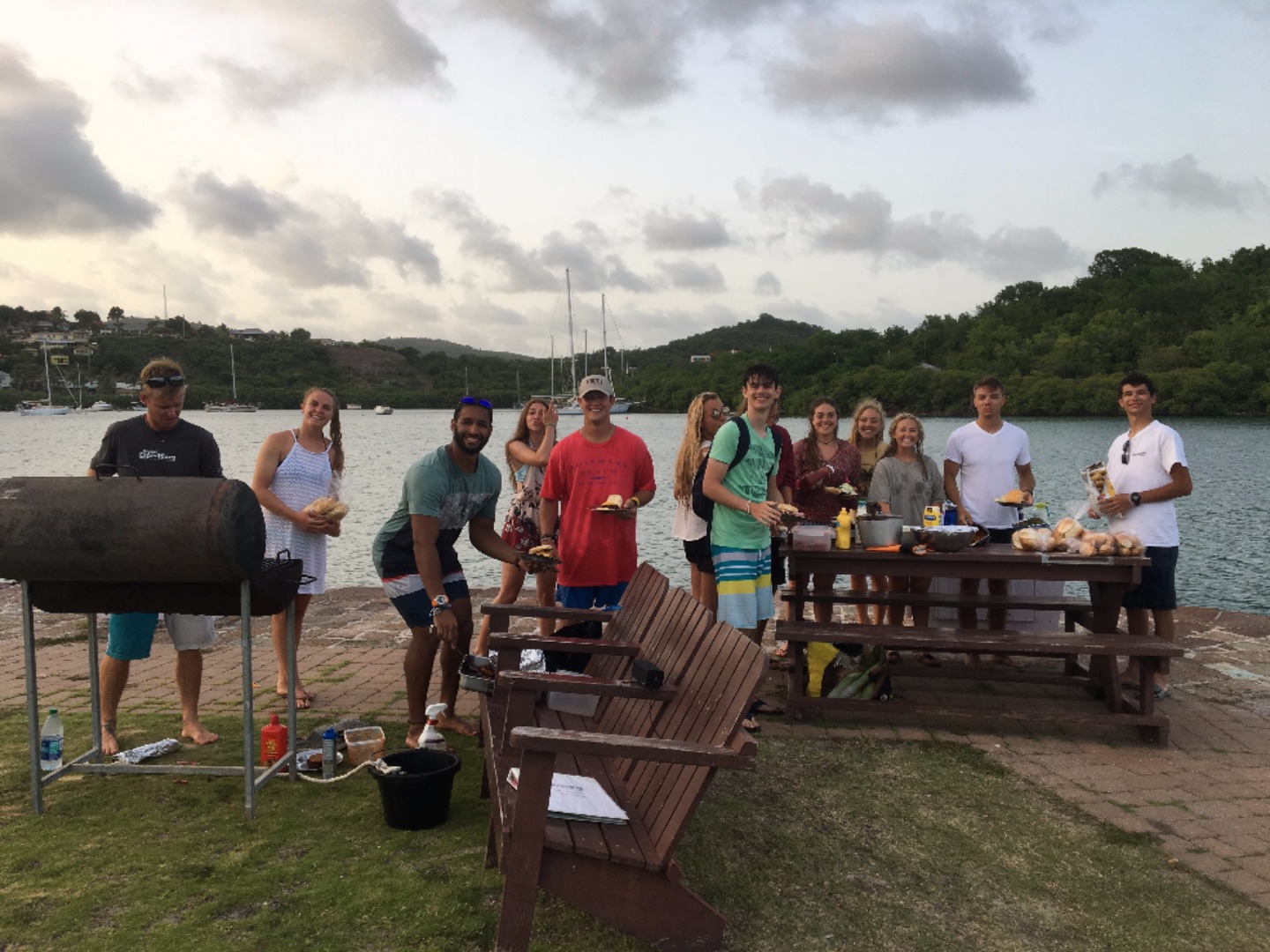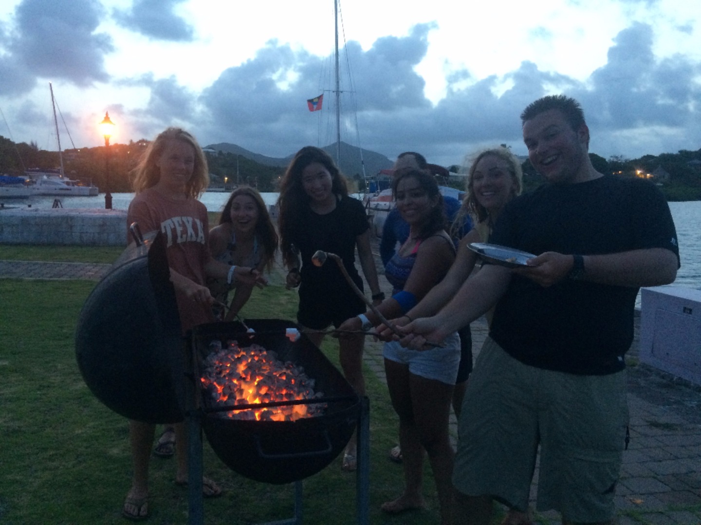 Today in Antigua, we started the day off by having pancakes and mango for breakfast. After breakfast, the Advanced Open Water Divers had a lecture, and then they went on a morning peak performance buoyancy dive while everyone else walked around historic Nelson’s Dockyard. A few people decided to go on a hike and see a museum, while others sat around enjoying the scenery and having lunch out at a restaurant and smoothies. After lunch, we all had an Emergency First Responder: Secondary Care lecture taught by Bobbie and a sailing lecture taught by Eric. Later, we all got together and had a beach BBQ where we played soccer and volleyball in and out of the waves and then sat around eating and listening to music. When we got back to Ocean Star after dinner, the Advanced Open Water Divers got to go on a night dive, and everyone else went into the Salon to watch a documentary. Overall, it was an amazing and relaxing day in Antigua, and we are sad to leave but very excited to see St. Barts tomorrow!