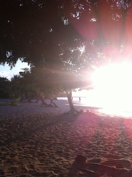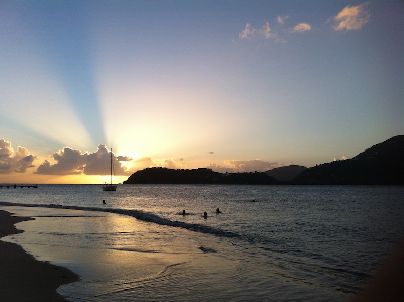 For some, the day began at 3 am. Making our way onto the deck to stand watch, the bright lights of Antigua were there on the not-too-distant horizon, and the bodies of those on the previous watch team incapacitated through seasickness littered the deck, groaning like pregnant seals. The seas were choppy, a product of the consistent 15-20 knot winds we’ve been getting over the past week or so, but the sailing was great, making an average of 5 knots over from Guadeloupe. On the turn of the next watch, starting at 6 AM, we utilized the extra numbers to start taking down sails and readying the anchor to drop in Falmouth Harbour. The dock wouldn’t be ready for us until 9 am, so the call was made to return to bed once the anchor was set to catch up on a few needed zzzzz’s before the busy day began. After breakfast, the crew hastily weighed anchor and maneuvered the boat around to English Harbour, ready to tie up to Nelson’s Dockyard Mediterranean style. Over the course of the next few hours, Ocean Star was restored to her usual beautiful self through a solid Boat Appreciation session. A couple of sails were taken ashore for some minor repairs, and the food stores were replenished through an extensive provisioning trip. Shore showers were a welcome sight for some, as well as the local convenience store, where cold drinks were purchased in abundance. At around 16:30, the crew started making their way over to Pigeon Beach, where a couple of us had ventured earlier to set up a BBQ pit and prepare some delicious cheeseburgers and BBQ chicken breasts. The real delight, though, was the grilled bananas stuffed with Mars Bar minis. What a great way to end an action-packed day. Sitting on a Caribbean beach watching the sun go down, having a couple of cold drinks, and enjoying some delicious food makes all the hard work seem like a breeze.
