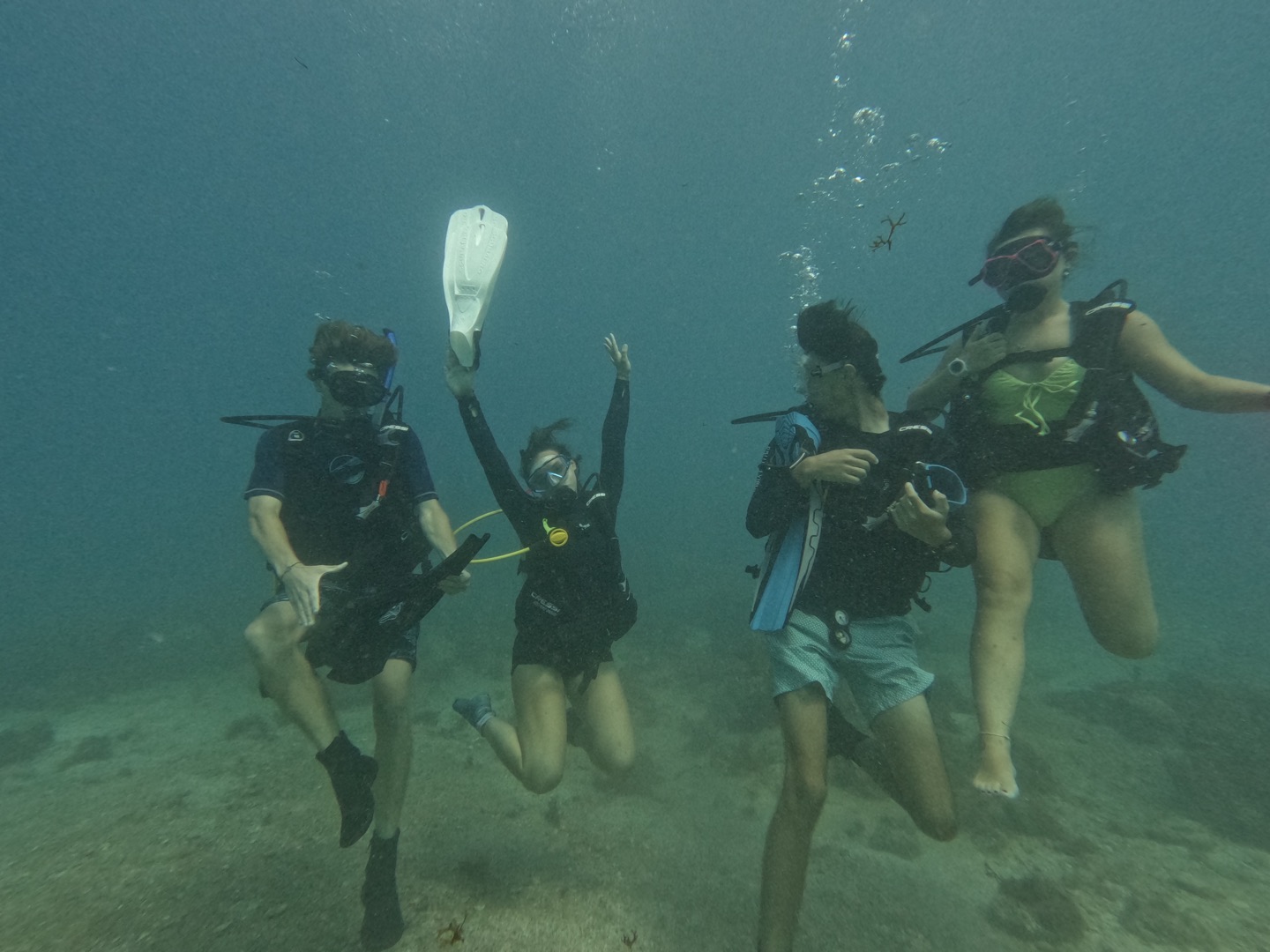 After we did the dreaded task, Luca, Hailey, and I decided to reward ourselves and take a dip in the bright blue waters. With our masks and flippers on, we dove in and flopped around for a good hour. In the water with us were Sabrina, Matt, Gem, Bryson, Alexa, Teagan, and the birthday girl herself. Some of us tried to reach the bottom- Gem, Matt, and Bryson were successful (Bryson even brought up a handful of sand as proof); however, I was not. We finished up in the water and decided to lie on the net, sharing stories and soaking in the sun. I think it was my favorite part of today.