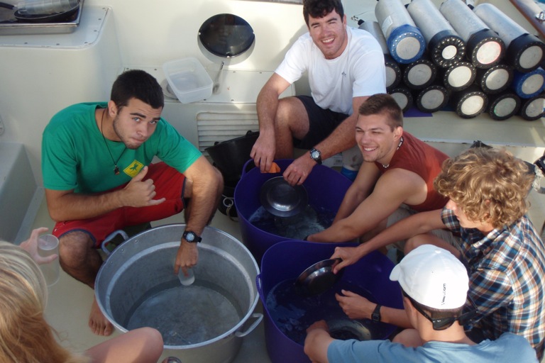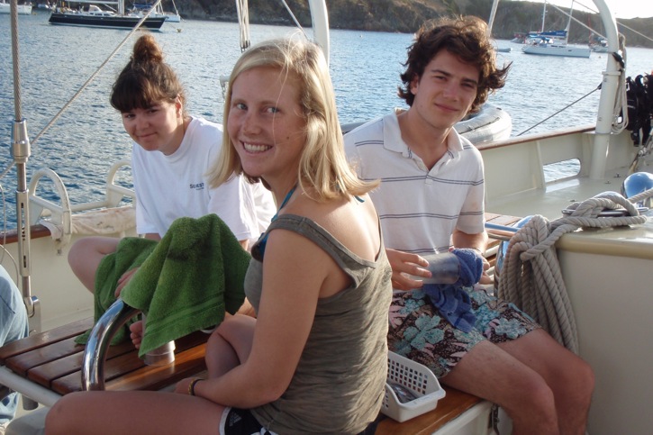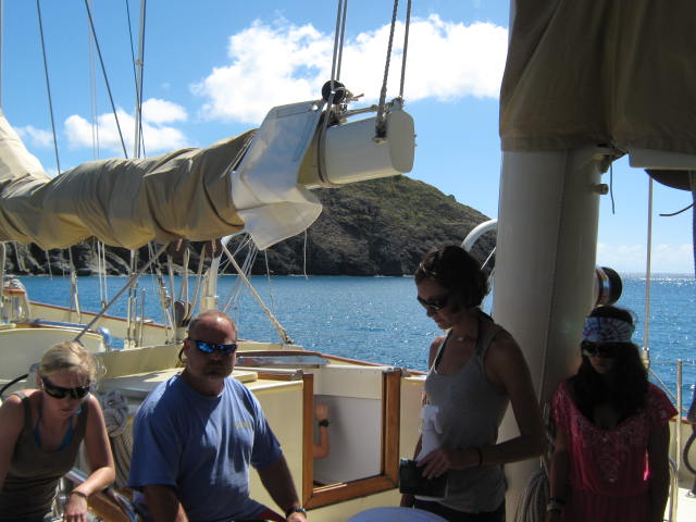 Breakfast today was a delicious mixture of eggie-in-a-basket and cinnamon sugar toast fixed by Heather, Casey, and Chessie. After breakfast, Al and Captain Steve gave the first class in Basic Seamanship. Soon after, we motored our way to the small island of Ile Fourche, where some of the students dove in to have a look at the reef while others hiked on the island. This was the majority of our day. As I write this blog, post-dinner clean-up is commencing, soon to be followed by a class on leadership from Leah. Tomorrow is likely to begin with a pre-dawn hike up the island to watch the sunrise over the ocean. On a side note, it is Nick’s 20th birthday today, which we were very happy to celebrate. His resistance to being thrown into the water in honor of this very special day was, to say the least, an inspiration. Even with many of the crew hard against him, he held firm, narrowly averting the unceremonious baptism prepared for him.