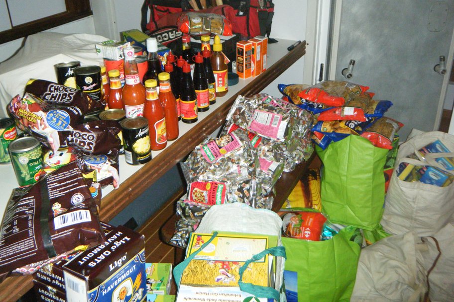 The day started a little out of the usual, with the blare of the fire alarm as a wake-up call. After a little breakfast, we made our way to Kuta Beach for a day of surfing! The whole group of beginners was split up into groups of three, each with one instructor, so we all got some one-on-one time to improve our skills. At first, surfing didn’t come easy to me. I would ride waves in on my knees, wobble back and forth, nose dive, and fall every possible way, but with time, we learned from our mistakes, and everyone got up! After surfing, we all got a little free time in Bali and then returned back to the marina for provisioning. I have never seen so much food; I can imagine we made quite a scene at the grocery store, clogging up three checkout lanes with carts and amounting to a six-foot-long receipt! We passed the food down a hatch from the deck to the galley, down below; I was on the receiving end, catching every single item of food. It was literally raining canned food, and my hands were on fire from catching all of the flying items. The saloon was covered from the floor to the ceiling with 250 boxes of milk, 111 cans of tomatoes, 55 pounds of rice, 100 bags of chips, 75 packages of pasta, and the grocery store’s whole supply of cereal. All of this, combined with getting back our clean laundry and a change of sheets, resulted in an amazing day.