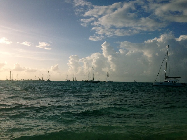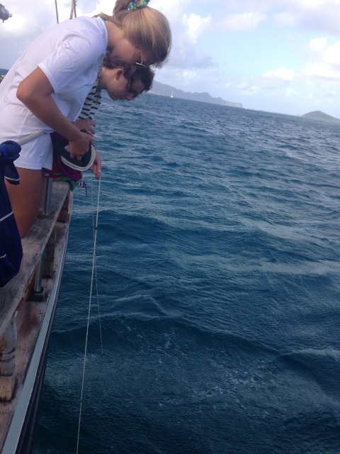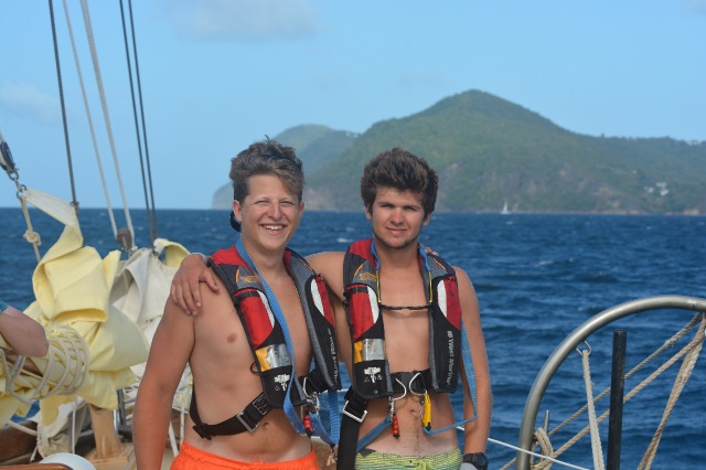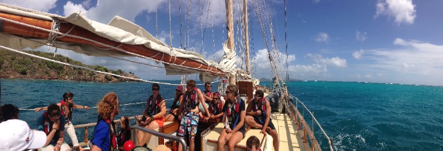 Today, we woke up to a beautiful sun rising over the Tobago Cays. After we filled our bellies, we had an oceanography class with Carolyn. We tested the salinity and pH level of the water in the Marine Protected Areas of the Tobago Cays, which hold a massive amount of marine life. After class, we were all excited to set the sails for Bequia, another island in the Grenadines of St. Vincent. After prepping the boat for the 7-hour passage, we hoisted our sails and turned the bow to the Northeast. We began watch and settled in for an awesome sail. We arrived in Admiralty Bay in Bequia and dropped a hook to hold us for the night. Admiralty Bay is an awesome place with huge green cliffs and is lined with white sandy beaches. On our approach to the bay, we saw these cool houses built on the side of the cliffs! We are all stoked for tomorrow when we get to go ashore to a sea turtle hatchery!