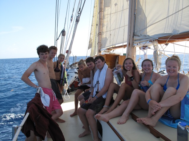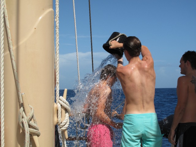 Passage life is an amazing time to get to know people. Today was interesting, taking our first shower on passage. All of us gathered together in a line, waiting to get buckets of salt water poured on us. It is actually a bonding moment. Later on, during the night watches on the Caribbean, you start believing you are a little like Jack Sparrow. Passing all the islands and identifying star constellations really makes you feel this surreal excitement of being the only boat in the entire ocean. In addition, nothing beats a good 6-hour sleep after your night watch to be woken up again to watch the sunset rise on the open seas. Here we come, Grenada! I hope you are ready for Oceanstar Fall 2014!!!