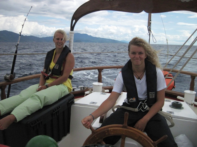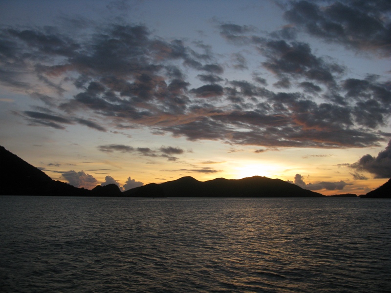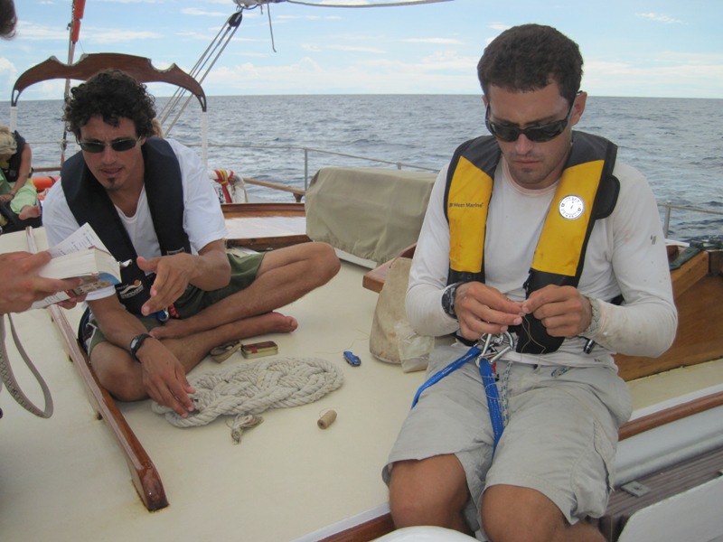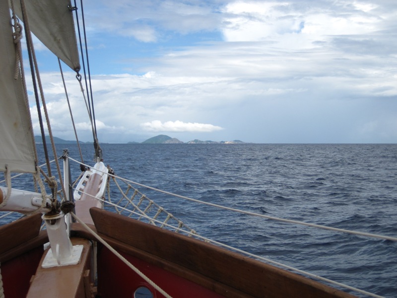 The crew awoke to a sunny morning and a delicious pancake breakfast today. We waited briefly for our clean laundry to arrive from Pancho and then began to prep the boat for passage. Everything seemed to run a little quicker and more smoothly today than it has in the past, a good sign that we are all starting to really get the hang of running the ship with minimal intervention from the staff. We set sail and headed north at a fairly good pace. Although it was not very windy, we seemed to have caught a current going in the right direction, which picked up our speed quite a bit. We only arrived in the Saintes a few hours ago, so none of us have been ashore yet, but from what we can see, it looks to be a beautiful place. We all look forward to a good night’s sleep and a day of exploring tomorrow.