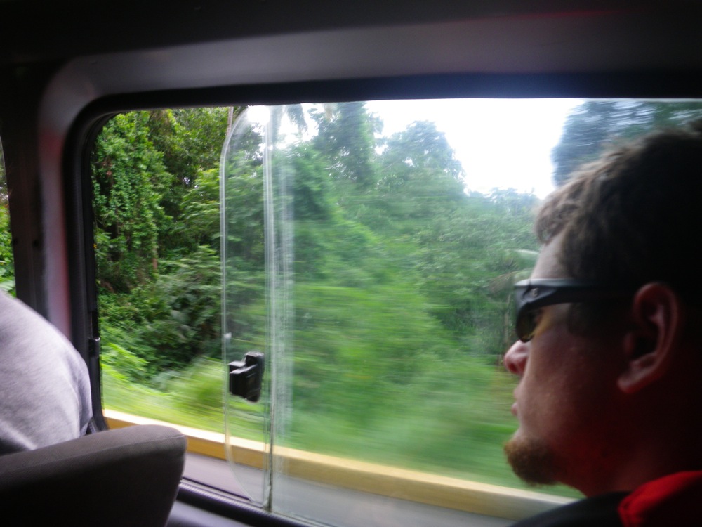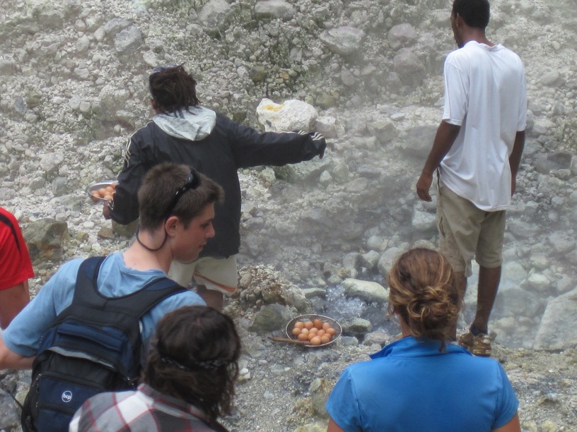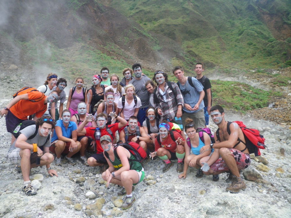 This morning began like no other. Tickled with anticipation of the legendary boiling lakes, everyone jumped out of beds like a bunch of spider monkeys and ran on deck to hear the morning brief and eat some delicious and nutritious prune flakes and dehydrated milk. Little did the crew know that they were in for an extra special treat, for I gave the morning brief in rap form. Sprinkling in awesome adjectives and amazing alliteration, I described the hike. I informed everyone of the legend of the monstrous serpent and that if their pants turned yellow, they should use detergent. (sulfur does that to pants) We packed up and got to shore to meet Pancho, who would be driving us in his van to the bottom of the mountain.