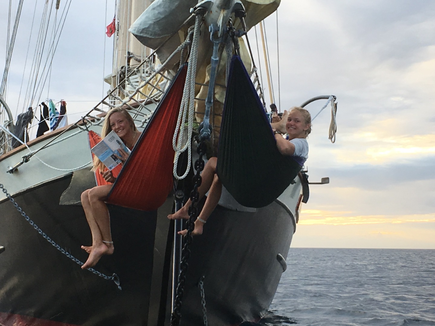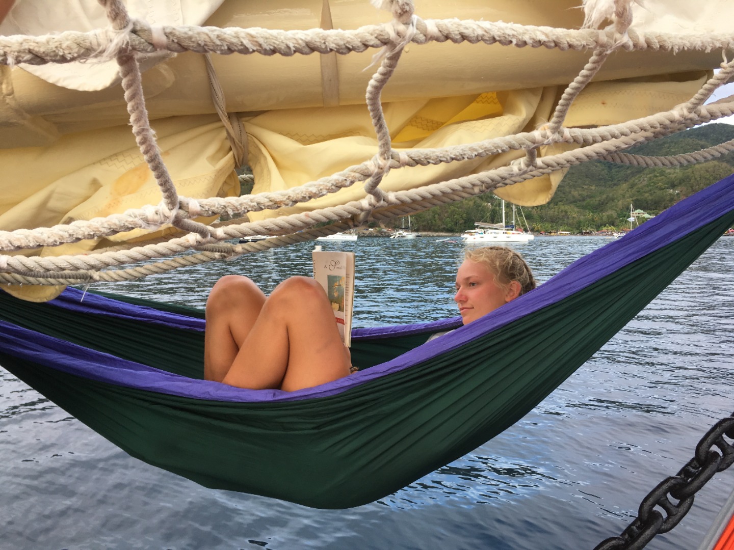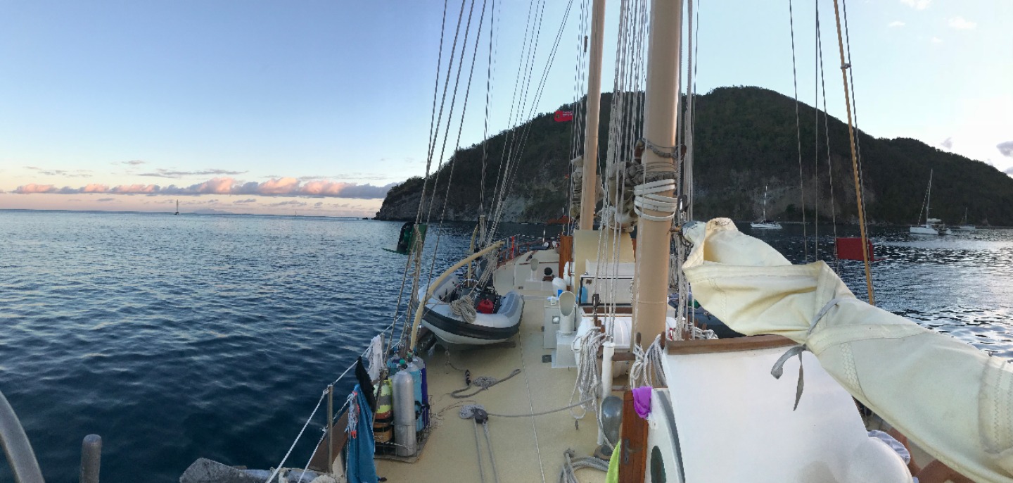 This morning on Pigeon Island in Guadeloupe, I woke everyone up at 7:00, and then we ate a breakfast of oatmeal in the salon because it was raining outside. We then had oceanography with Steph, where we had a class then watched the documentary Blackfish about Orcas and Sea World. After this, we had study time until lunch. For lunch, Wiggy put out sandwich stuff and the leftover pizza for us to eat. After lunch, all the girls went diving while the boys stayed on the boat and studied (but probably slept the whole time). Devi, Kelsay, and I went off by ourselves and ran into a huge barracuda that surprised Devi. We also saw a ton of black durgons and parrotfish along the beautiful reef. While we were diving for fun, Katie, Elle, and Olivia were gathering research about Christmas tree worms for their group research project. Around 3, we returned to the boat to shower and do some work for classes and have some free time onboard. For the second time this trip, my laptop had water spilled on it, and so it is currently sitting in a huge bowl of rice. Hopefully, this fixes it! We started watching Moana right before our delicious Shephard’s pie made by Wiggy. After dinner, we had a Leadership class with Wiggy, and he introduced to us our essay prompt about our adventures on treasure island a few days back. After about 45 minutes of focusing on writing the essay, we turned Moana back on before bed.