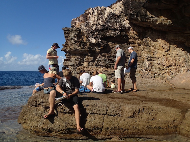 We woke up this morning to our last full day in lovely English Harbor. After a nice breakfast, Nick and Ivy took the students to the Pillars of Hercules. They walked along a rocky bluff overlooking the sea and spent some time learning about life in the intertidal zones. Afterward, a couple of the research groups went for a project dive in the mouth of the harbor. We all had lunch together onboard and then split up in the afternoon for a bit of shore time. People walked the surrounding docks, looking at the amazing boats and wandering through the marina shops. Some spent some time in cafes while others finished up some work on board. We all met back for an early squeeze (which turned out to be a fun game of telephone) and a hike up to a place called Shirley Heights. After a run up the hill, we made it just in time for the sunset. From the top, we had an incredibly picturesque view of Antigua. We enjoyed the view from up on the hill until dinnertime when we headed back down into town. Tonight was a dinner-out kind of night; most people enjoyed the local restaurants while a few of us had our meal on the dock. We had a wonderful day with a spectacular ending.