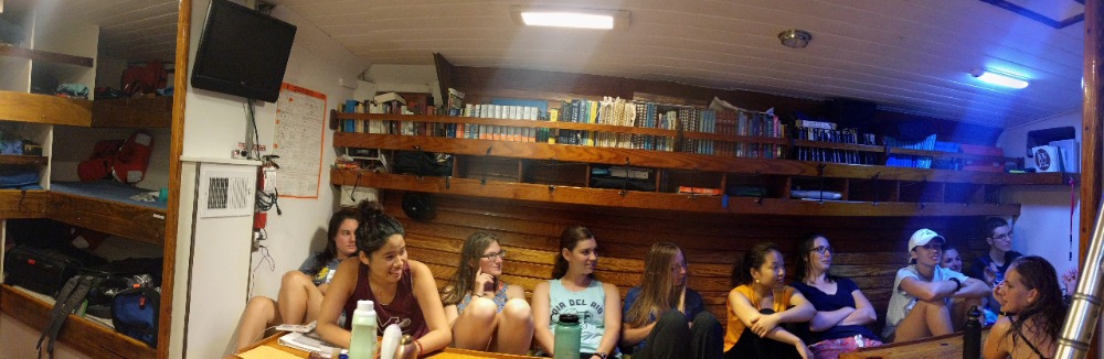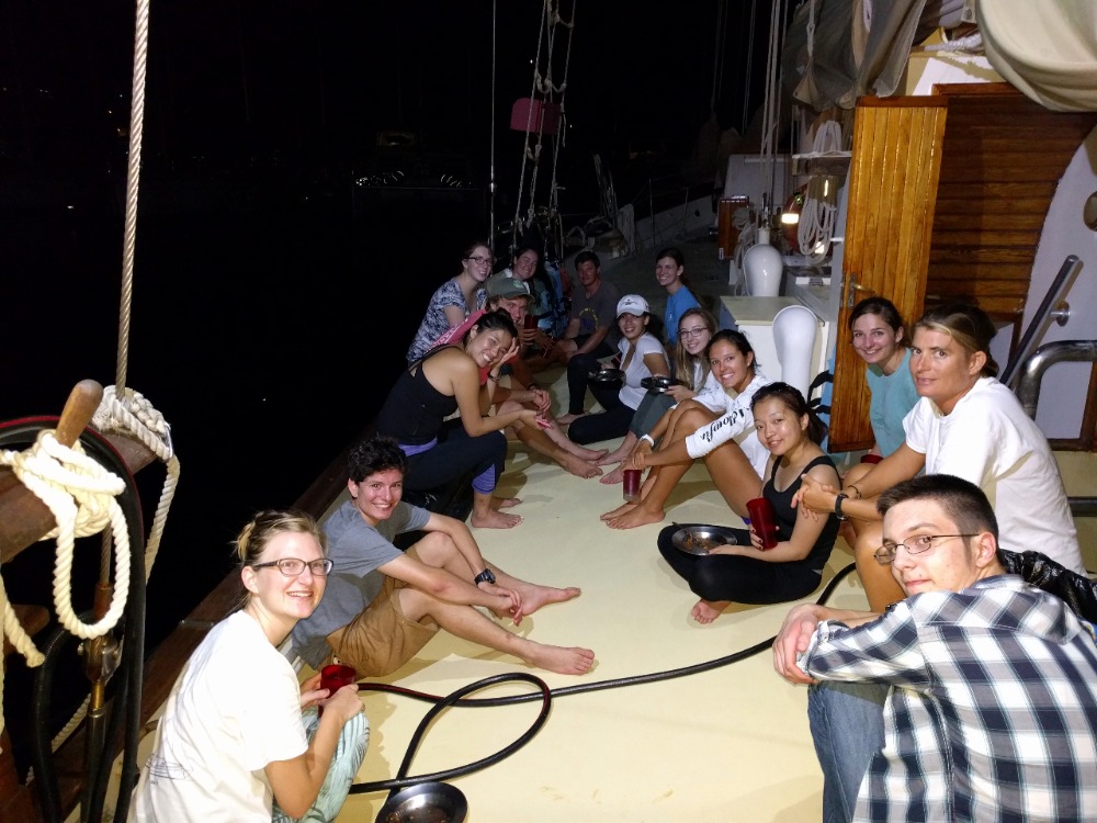 It began as a very quiet morning with the instructor crew of Ocean Star awakening to a ready boat in need of only a few more final touches. As the morning shifted toward the afternoon and the final items of preparation were crossed off the list, the staff grew more and more restless as they peered across the water at the ferry dock in anticipation of the students ‘ arrival. The sun began to sink lower and lower toward the horizon, and still, no ferries were in sight, but as the sun dipped behind the ferry dock hill, they finally arrived. In one great gaggle, we had our new family of fourteen student crew. The bags were loaded into dinghies, and the students zipped across Soper’s Hole before the light had the chance to fade. Once all settled and stowed, many grumbling stomachs cried out in a cacophony of growls that forced the hand of our ship’s provisioner to present dinner to the students just before check-in. Eric prepared a wonderful pasta casserole, which was quickly devoured by students and staff alike. Clean-up, check-in, and salty showers off the dock preceded our final chat of the night about life aboard and safety briefings. Many of a pair of heavy eyes pushed through the talk about cleanliness, roles, and responsibilities. It has been a long day of travel for many of our students, but we are excited to have them aboard, and we can’t wait to get underway tomorrow. It is going to be a life-changing adventure, and hopefully, you all at home will be right here with us over the course of these blogs. So, to you back home, enjoy our story! Until tomorrow!