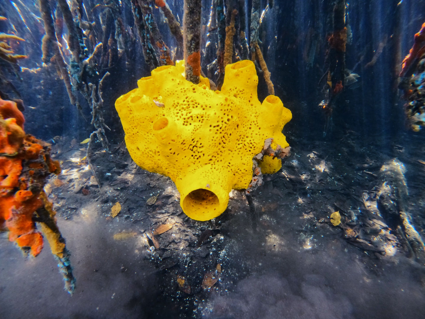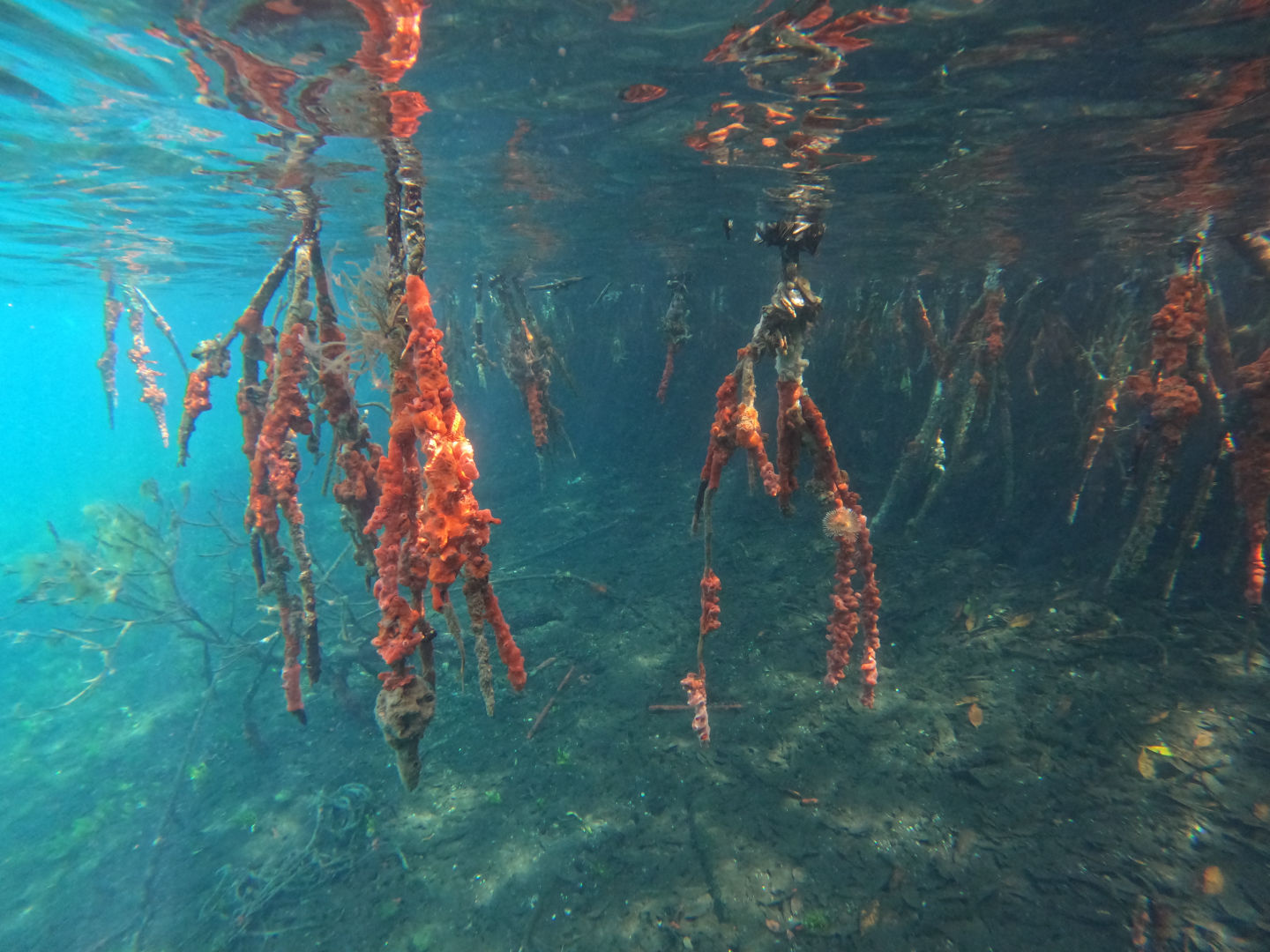 1 – the sponges hanging on the mangrove roots