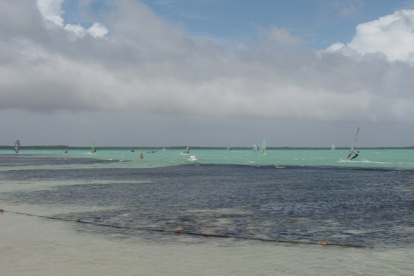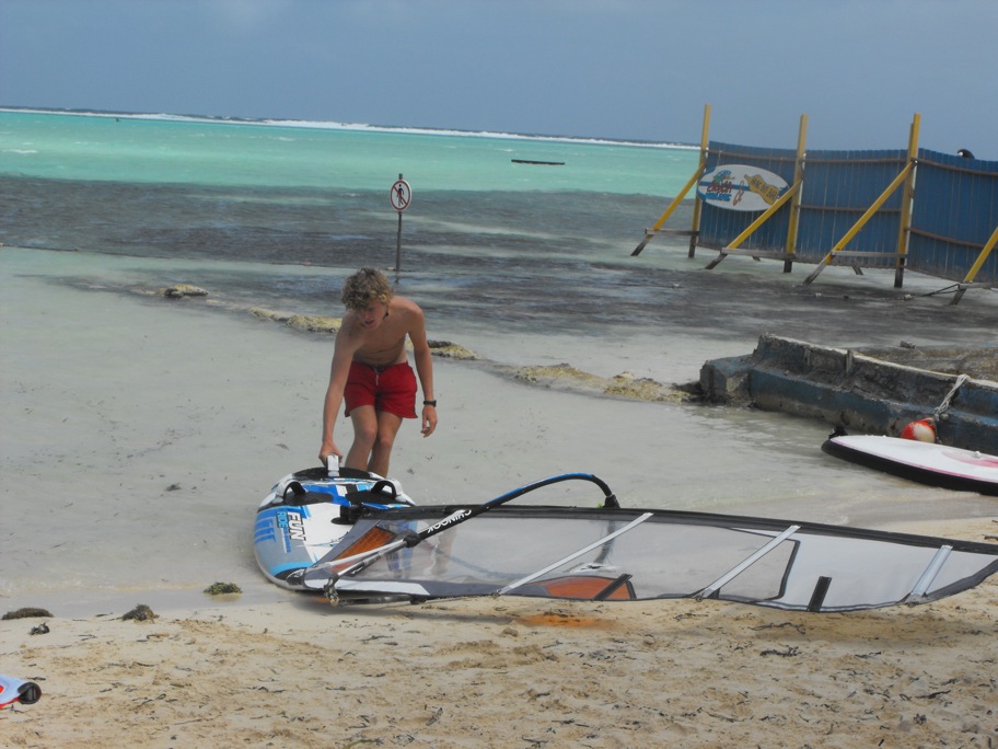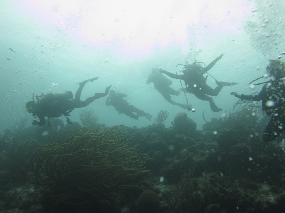 Imagine this: you wake up, get your scuba gear together, hop in a boat, and drive a short 5 minutes to a dive site. You then hop in the water and drop down, starting at 15 feet, and follow a wall that is 90+ feet high. This is diving in Bonaire. It is a place where you can get world-class diving right off the shore. Today and tomorrow are days filled with diving and windsurfing. Half of the group went over to a small bay where there was epic windsurfing, while the other half spent the day below the water, blowing bubbles along spectacular drop-offs. Tomorrow, the groups will switch, allowing everybody to have a chance to experience all that Bonaire has to offer. The dives today started off with a wall dive at a dive site named Cliff. There, you started at 15 and followed a near vertical drop off to 90 ft. Along the way, we saw amazing corals and large fish. Everybody who dove managed to get at least two dives in, while those who were adventurous managed to get in three dives. All in all, it was an epic day of diving