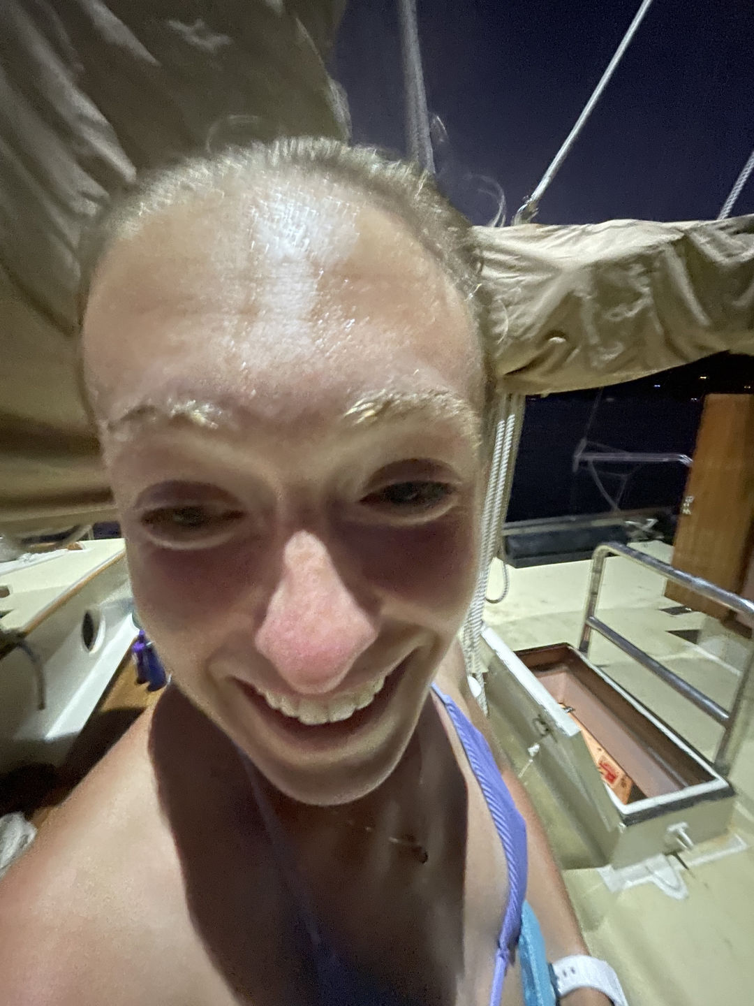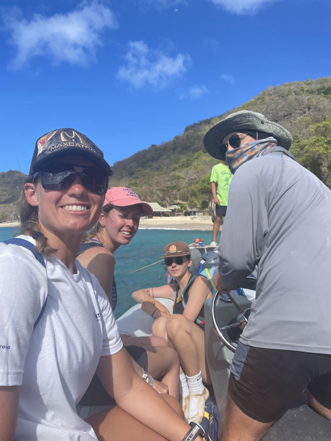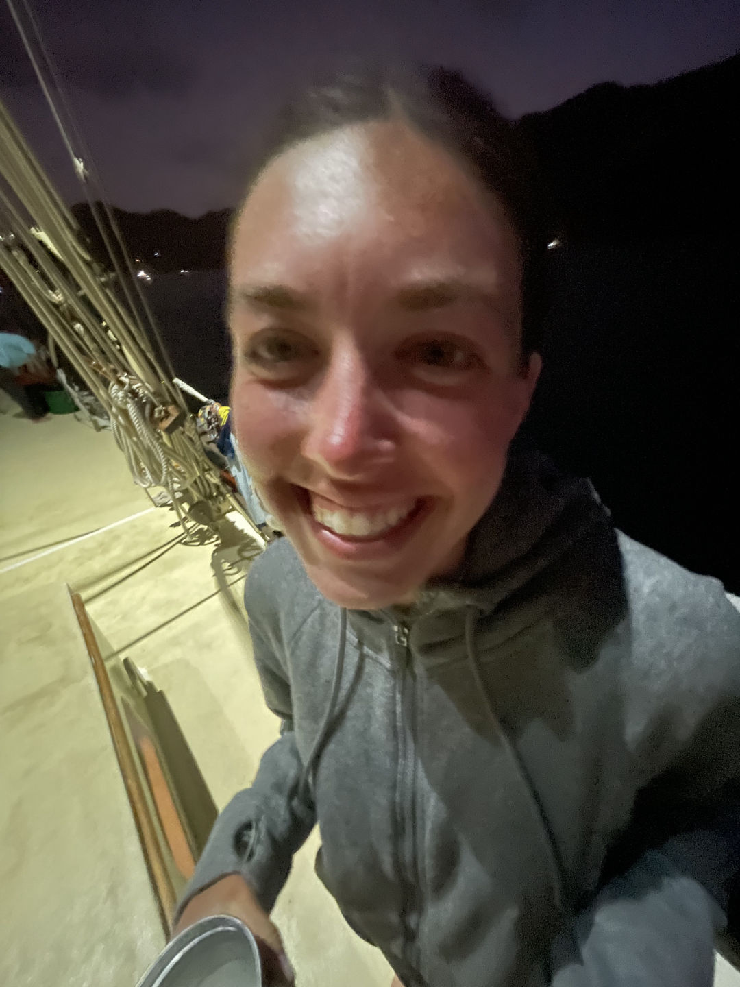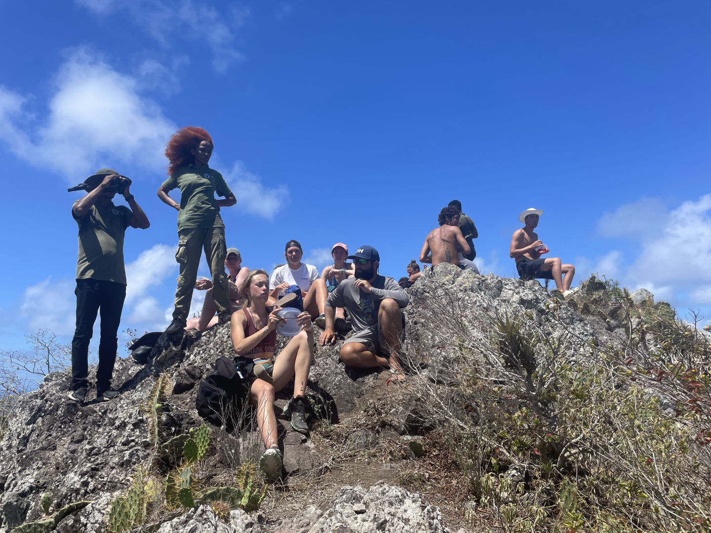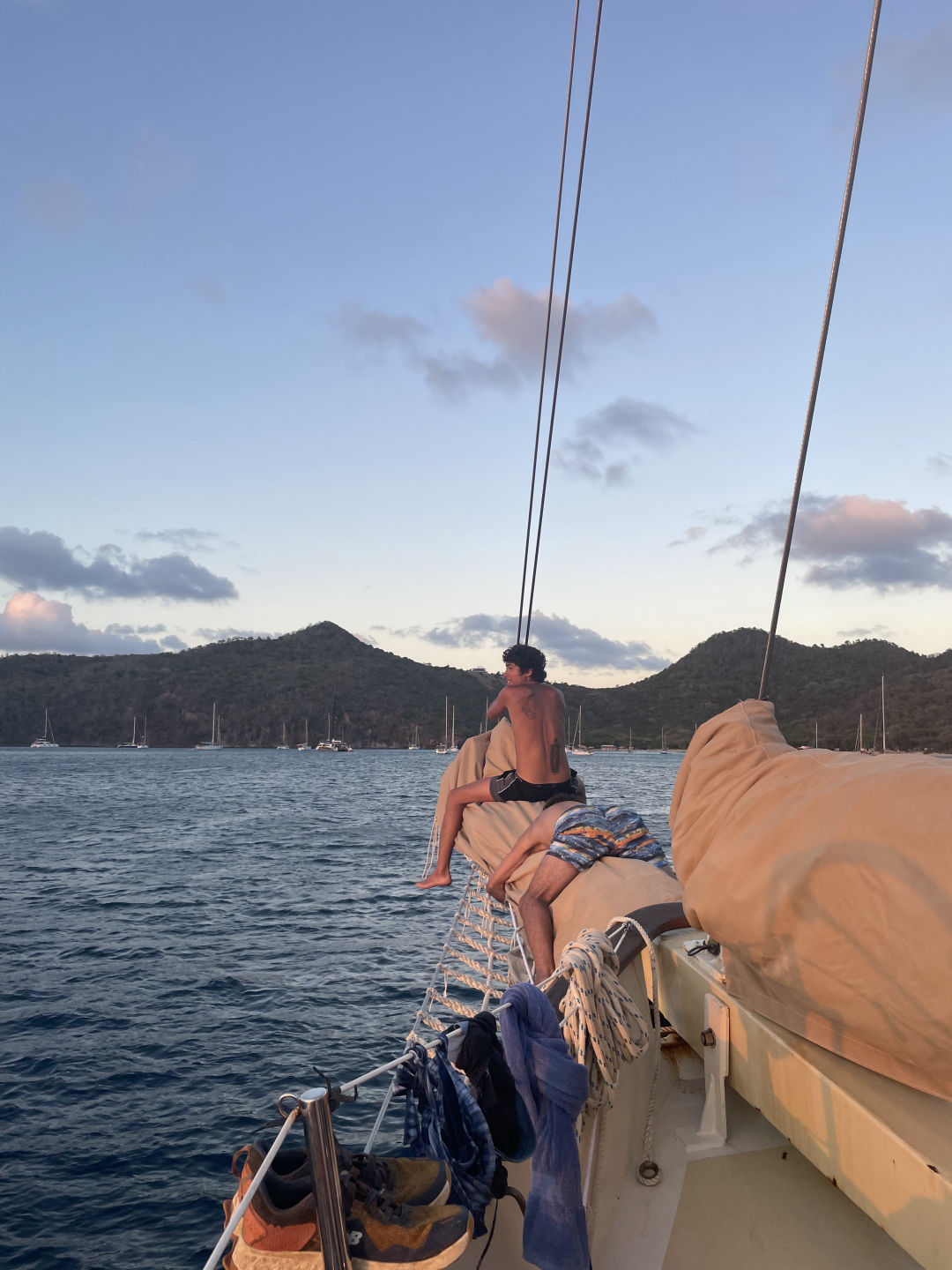Today I was awoken by the dreamy smell of cinnamon wafting all the way to the focsle, reminding me that I had forgotten to wake the rest of the crew up for breakfast. With the help of Heather and my speedy changing skills, I was up to wrangle the sailors in no time. After a hearty breakfast, we lowered the dinghies and jetted to the sandy shores of Union Island. From there, we embarked on a steep climb up to the top of Mount Taboi, which wouldn’t have been complete without frequent sightings (and one spirited chase) of the Pink Rhino……….Iguana. On the way down, we nervously scrambled in front of Jack and David, who bulldozed the trail like nobody’s business. After learning about the history of Union Island, we made our way back to our lady Ocean Star and put her majesty to bed. Then, using my favorite Suave strawberry shampoo, I enjoyed a lovely shower. We finished the day off with a scrumptious meal prepared by the world-renowned Clara and then contemplated our favorite fruits and the thing we’ve learned about ourselves in the last year. Signing off, goodnight to all and to all a good night.