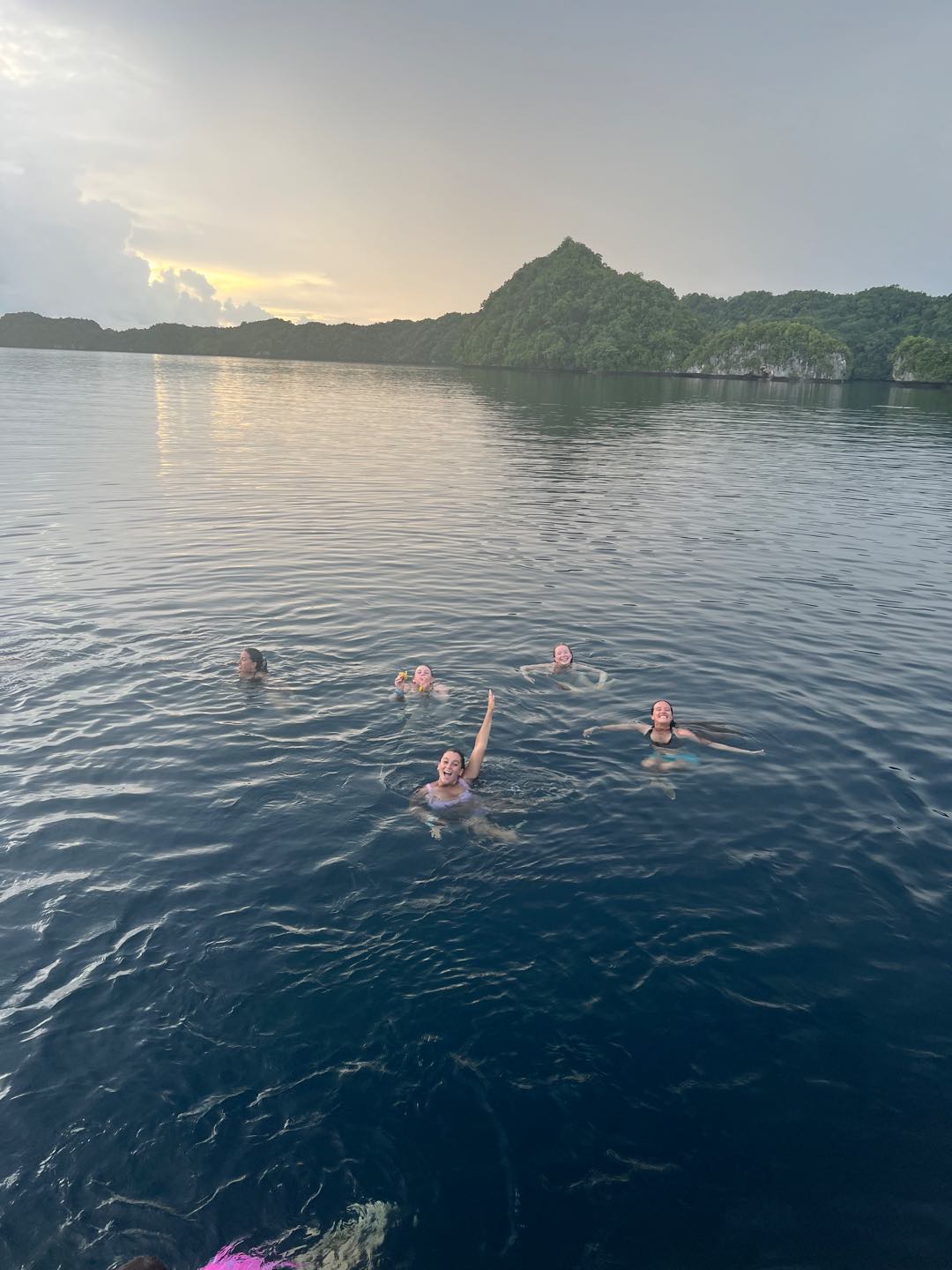 We moved the boat to a lovely little spot with an incredible view. After a long day of putting our blood, sweat, and tears into cleaning Argo (heavy emphasis on the sweat), we all enjoyed jumping into the water. We swam until the sun started to set and then headed up for dinner. After today’s sneak peek of swimming in Palau, everyone is thrilled to SCUBA tomorrow.