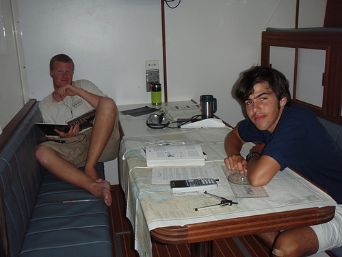 Today was a superb day at sea for the crew of Argo. As we started to adapt to watch rotations, the sea repeatedly opened up to show us its best; three separate times, we watched sperm whales play in the ocean as we motored towards the Marquesas, somewhere thousands of miles in our future. The wind has been light, but we had the sails up to stabilize the ship and take advantage of light puffs when they came. The rain has been on and off but often clears enough for a glimpse of the stars at night. Today the crew learned more conventional navigation by calculating speed using some scraps of paper or bread thrown in the water and enjoyed an OCB class, appropriately, on marine mammals. Spirits are high, and the crew is excited to voyage west, hopefully meeting the tradewinds soon to carry us to French Polynesia.