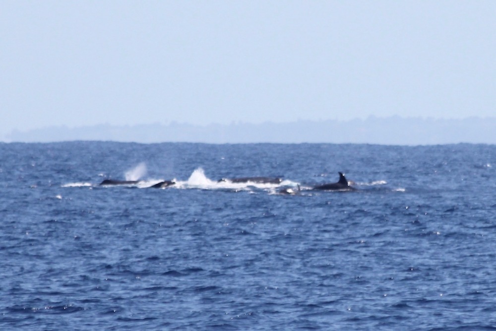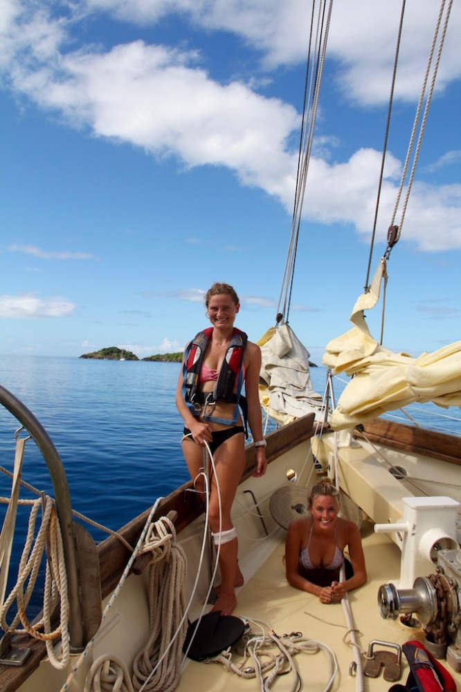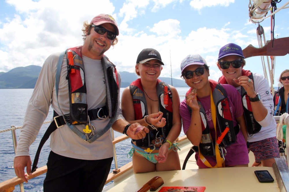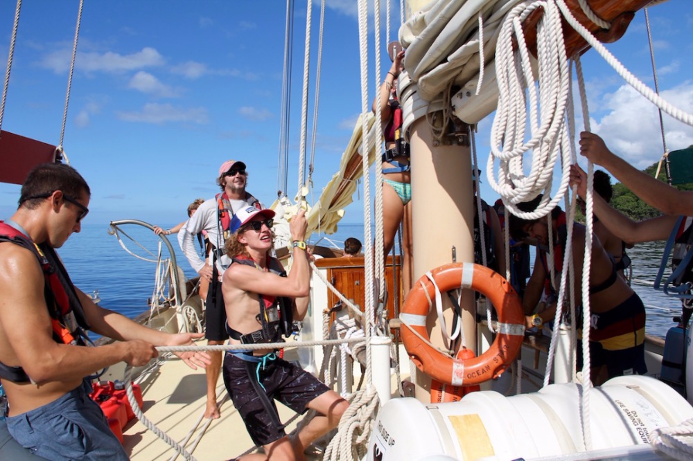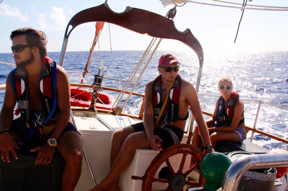 Today was an awesome day. Some of us who were willing to brave a 5:30 am wake-up call got up before the sun to be in the water for a sunrise dive at another site near Pigeon Island. I didn’t go myself, but I heard it was one of the best dives of the trip, complete with a sea turtle scratching itself on some coral. After breakfast, we got straight into passage prep, with the students leading the way to Antigua for our third student-led passage of the trip. It is awesome to see them progress and learn new skills. The navigation team learned how to use our computer navigation system with Tor and plotted our route. The crew was in a great mood and full of energy, and they decided to raise our three main sails while still at anchor and sail off the anchor, raising the other two sails once we were further from Guadeloupe and had a bit more wind. It was a beautiful day, and everyone was enjoying the passage, but the real excitement came in the afternoon when we heard Caroline and Morgana up on bow watch shout, ‘whales!’ At first, we thought it was humpbacks, but after a little while, we realized it was a mixed group of sperm whales and Orcas. Orcas are quite rare in the area, and it was an amazing experience to see them here in the Caribbean in the wild. Even crazier was seeing them with the sperm whales. We don’t know for sure, but based on the commotion going on, it is likely that the Orcas were hunting one of the smaller sperm whales. After learning about marine mammals in OCB a few weeks ago, it was absolutely incredible to see them while out at sea.