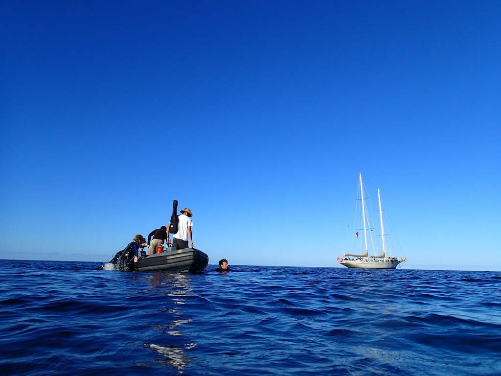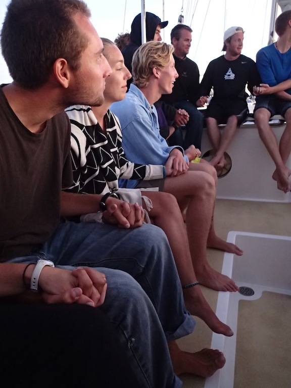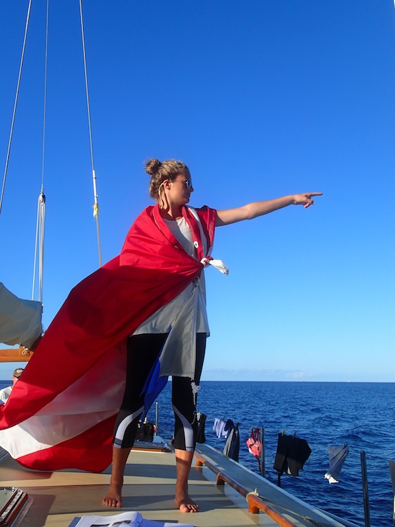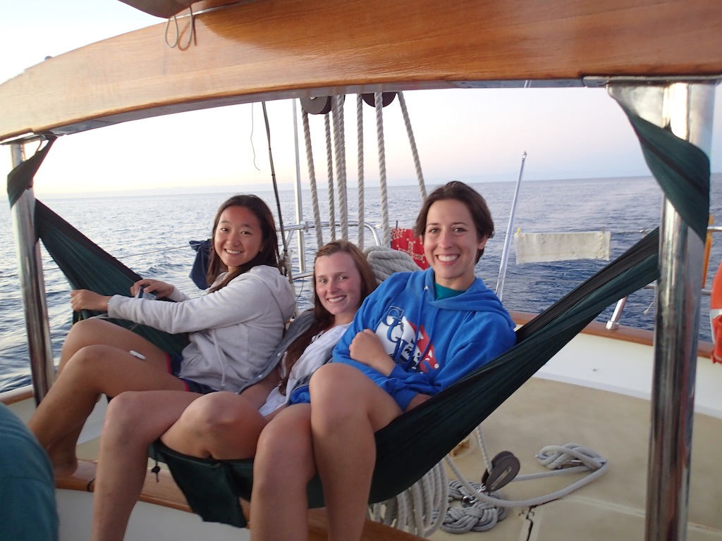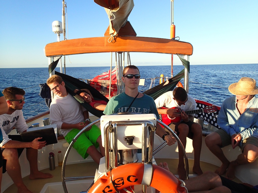 What is that thing? Oh, it’s another shark!! This one was a Gray Reef Shark a little over four feet long! This guy was a lot less skittish and came fairly close to us before swimming off to do more sharky things. After we finished diving, we began the three-hour trek back to our anchorage, which I spent in a hammock with Eric helming and Sully playing the guitar and singing. It was the perfect way to end the day! I’m, of course, ignoring the fact that we went back and had to take an exam. No one wants to hear about that. You all want to hear about WHALES! And there were a ton of them! Just jumping around and breaching, and we got to see them. We saw like a billion of them. It was spectacular.