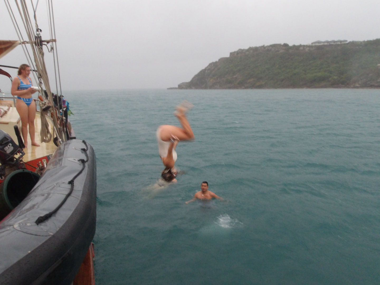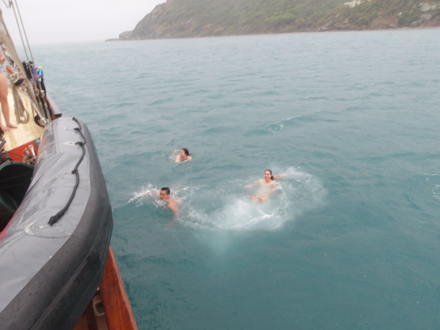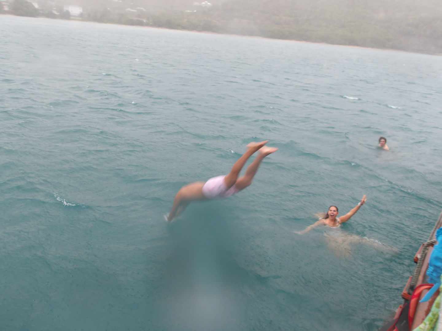 Hello, all friends and family! Today was a bit of a different one, as it was raining pretty much the entire day. Apart from dropping the starboard anchor in the morning, most of the day was spent in the saloon, being introduced to academics and playing some fun games. Drew introduced the leadership course, and Ben introduced the Marine Biology course, which is really exciting! We had a little bit of downtime before lunch as it was a bit too treacherous to go swimming or scuba diving. After lunch, all of us were either introduced or given a refresher on RDP tables (recreational dive planner) and had some lessons on some of the important knots that we will need to know moving forward. Drew gave us a crash course on the bowline, figure 8, reef, clove, round turn, two half hitch, barrel, sheet bend, and double sheet bend knots. Some are definitely much easier to pick up than others, but I am confident in our ability to get all of them down in no time! After that, we did an icebreaker activity involving creating wanted posters for each other based on their likes and interests (nothing criminal), which turned out to be a really fun activity. We then had some time to take showers, with many of us embracing the rain and having a fun time swimming while washing ourselves (Check Photos). We then had some downtime where we played some Pictionary and some card games. Drew really appreciated the lovely drawing that Evan created of him during Pictionary. We then ended the day with a delicious spaghetti bolognese made by Kackie, and some of the uncertified scuba divers are currently taking some quizzes so they can get in the water tomorrow! The weather tomorrow is supposed to be really nice, so it’s looking like we will resume normal procedures and finally get some underwater action for the first time, which is super exciting!