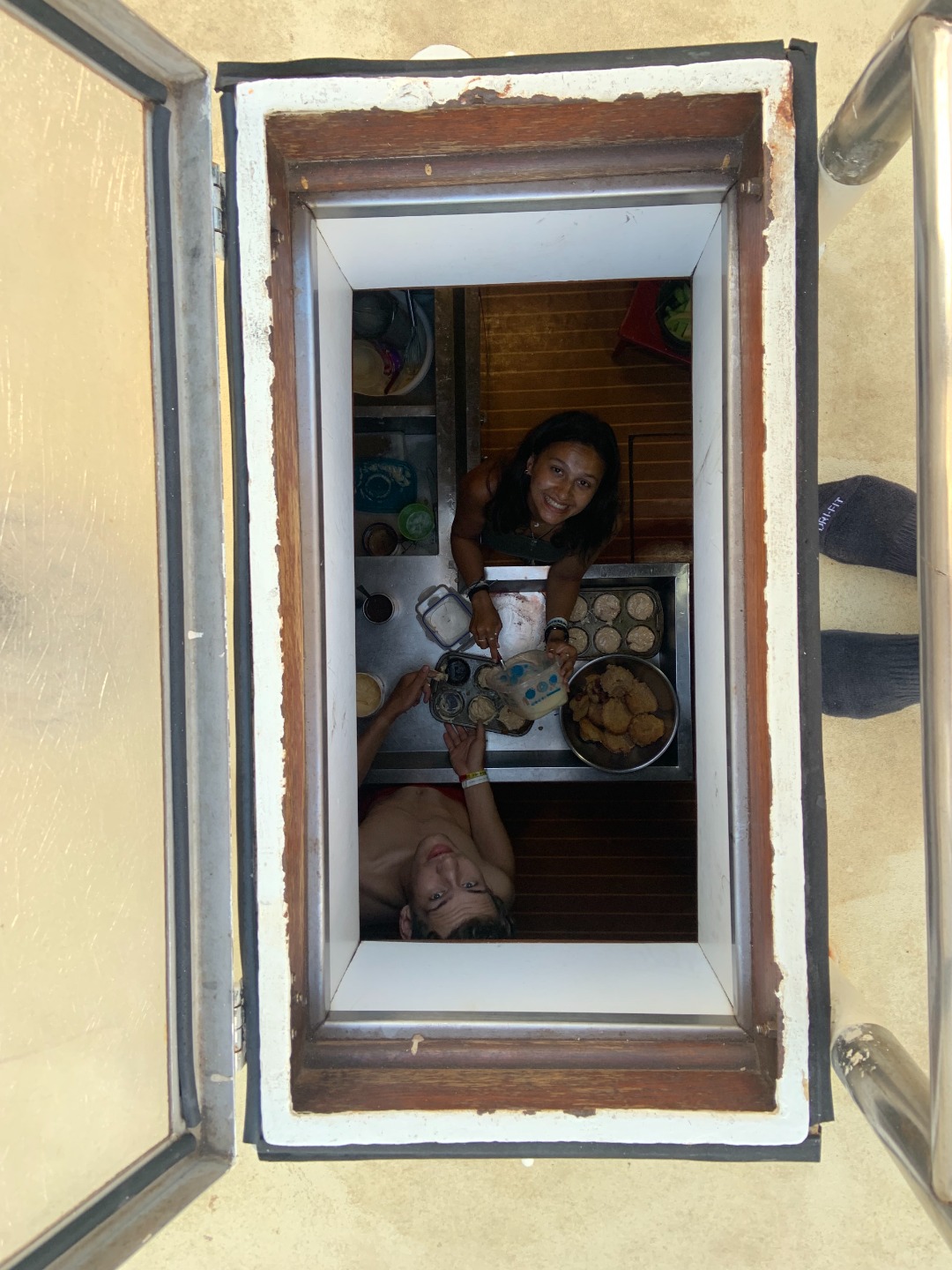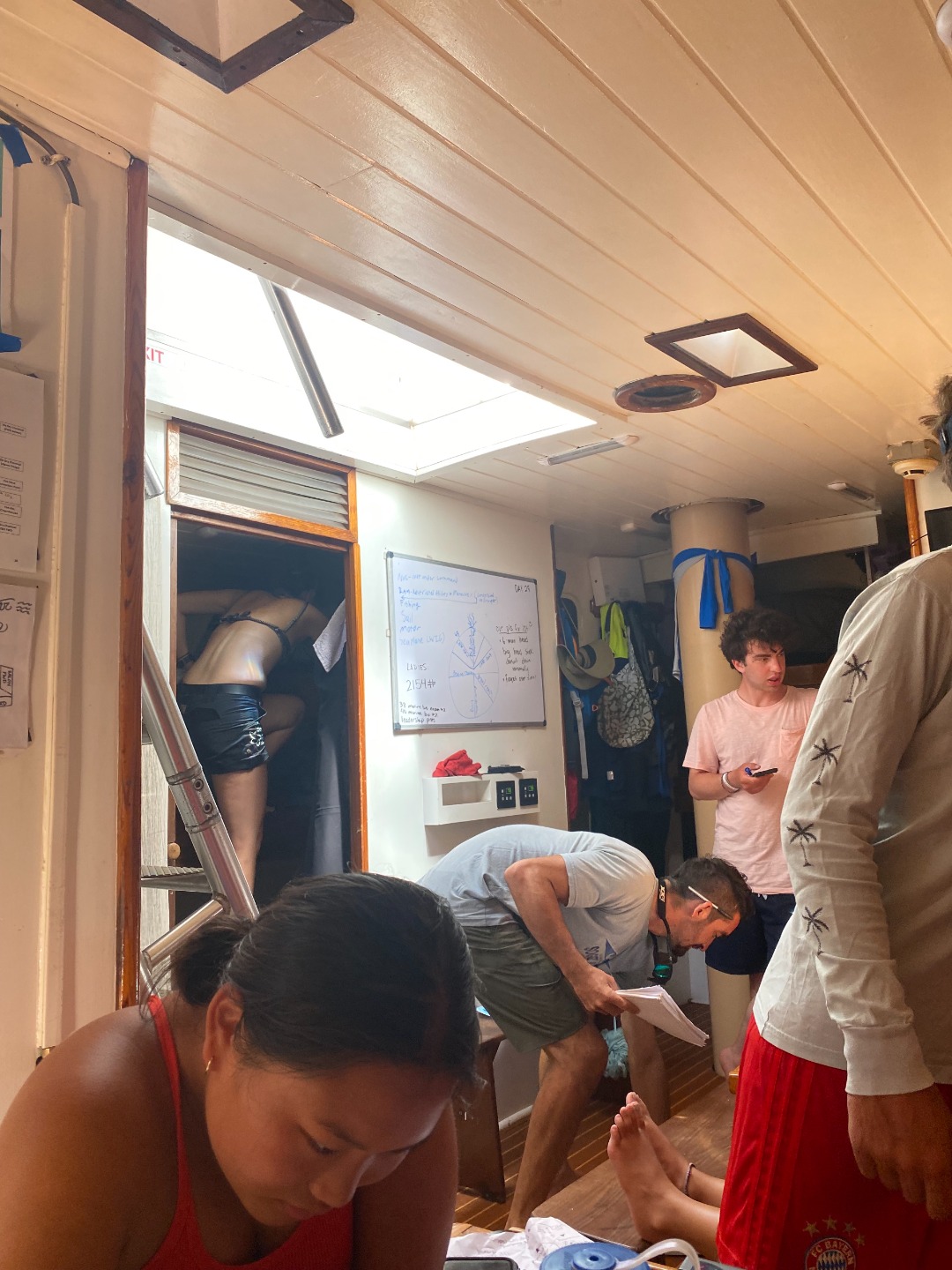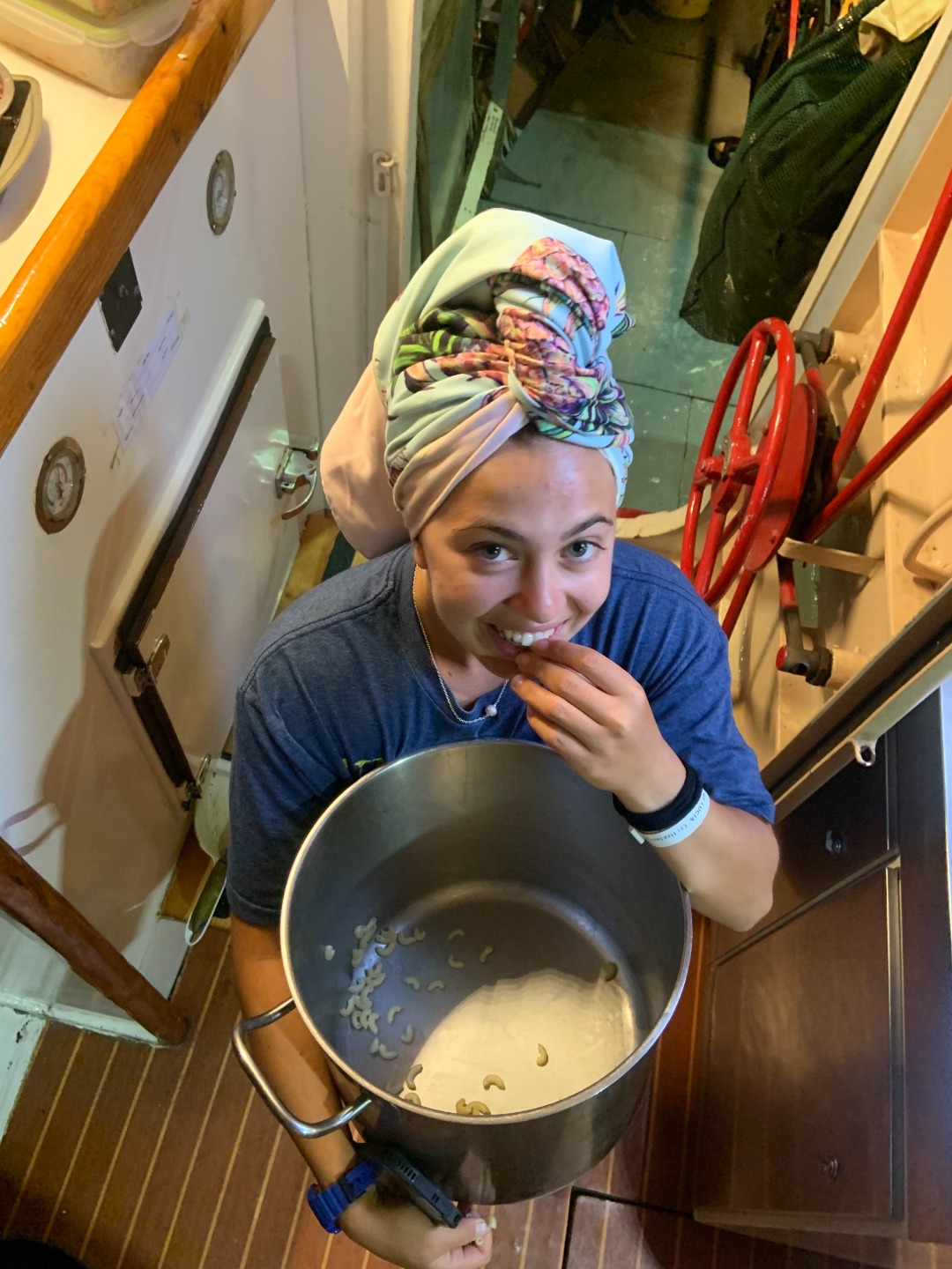 For me, the day started exactly at 7 when Sierra woke me up and let me know I was skipper. Breakfast was a delicious meal of strawberry muffins, yogurt, eggs, and so much bacon. After a quick clean-up, we had a marine bio class where we learned all about different types of worms and slugs. After marine bio, we took our IYT certification exam (that we were all totally 100% prepared for) and rolled into a lunch of sandwiches. At lunch, we saw the ‘Below Deck’ crew film a very dramatic episode right across the dock from us. We managed to convince Sam to let us runoff for a spontaneous ice cream run before digging in and scrubbing ole O Star from top to bottom. We had a crew on the deck (lead by Kelly and her toothbrush) while the rest of us scrubbed the salon and the heads (including the bilges and behind the oven). After BA, some people showered and got caught on up on work. Just before our dinner Brett and I were messing around with the soccer ball on the dock, and I managed to kick it into the water. Brett heroically jumped into the somewhat gross harbor water to get the ball. Dinner was baked mac n cheese (again, with so much bacon) followed by a fitting squeeze question of “what kind of cheese would the person to your right be?”. Now we have to put away provisions, so the blog ends here.