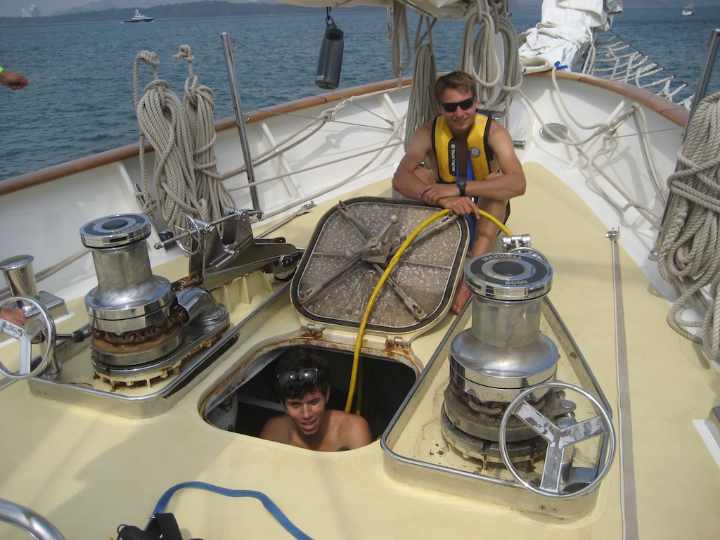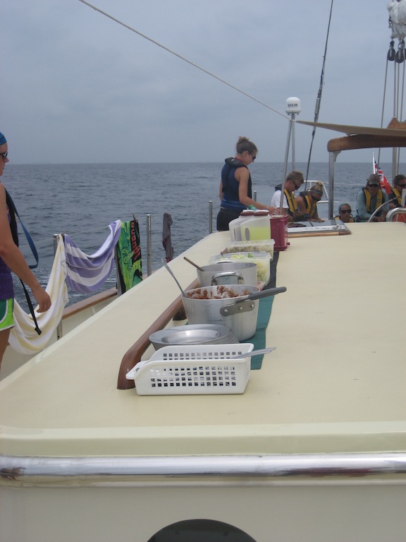 This morning we woke up to a delicious breakfast of pumpkin pancakes. Following breakfast, we prepped Argo for our 900-mile sail to the Galapagos. Around 10 am, we lifted our anchor and started our sail. Once underway, we enjoyed Huevos Rancheros for lunch. At 1 o’clock, everyone sat down in the saloon to keep working on their OCE lit reviews. Once class was finished, everyone gathered on deck to raise sails. We all thought it went smoothly until we realized that the fisherman sheet was twisted. It took about two hours to solve the problem, and Kris even had to go up the mast. We brought him down pretty quickly in the end because he felt extremely seasick, and he thought he was about to boot (which never happens). Later on, we had a delightful dinner consisting of scalloped potatoes and Alfredo pasta. Right now, everyone is resting below or settling into their watch for the next few hours. I hope everyone at home is doing well. I can’t wait to see you all in about 50 days! Miss you!