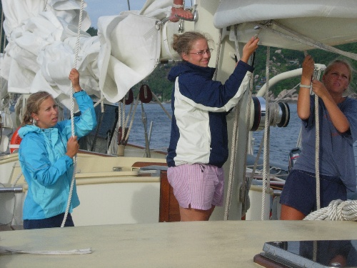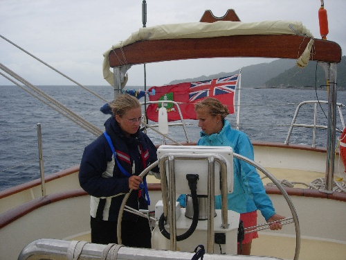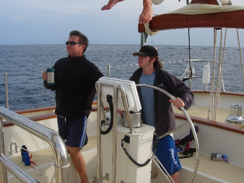 Sailing to Ko Tao, we had a reefed main and a staysail, and with the wind over 20 knots, we made good time. After dropping the hook, a rather tired crew had a quick breakfast then hopped in the tender for the first dive of the day. Tanks were pumped during oceanography class. The crew then gorged on Boomer’s famous grilled sandwiches. Tenders were loaded for the deep-dive, after which gear was stowed and sails hoisted in record time. A tired bunch of newly certified PADI advanced divers sailed to Ko Sichang.