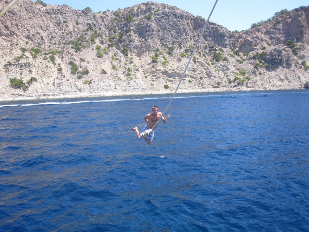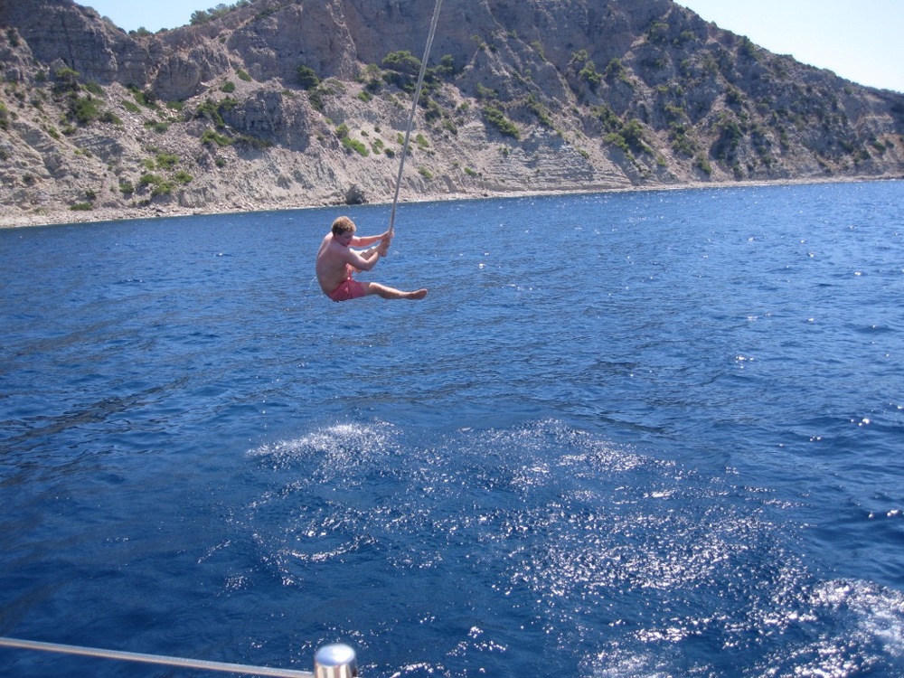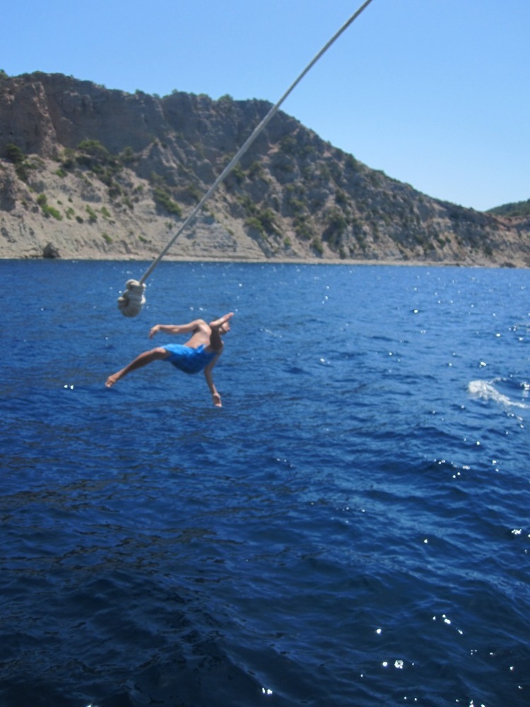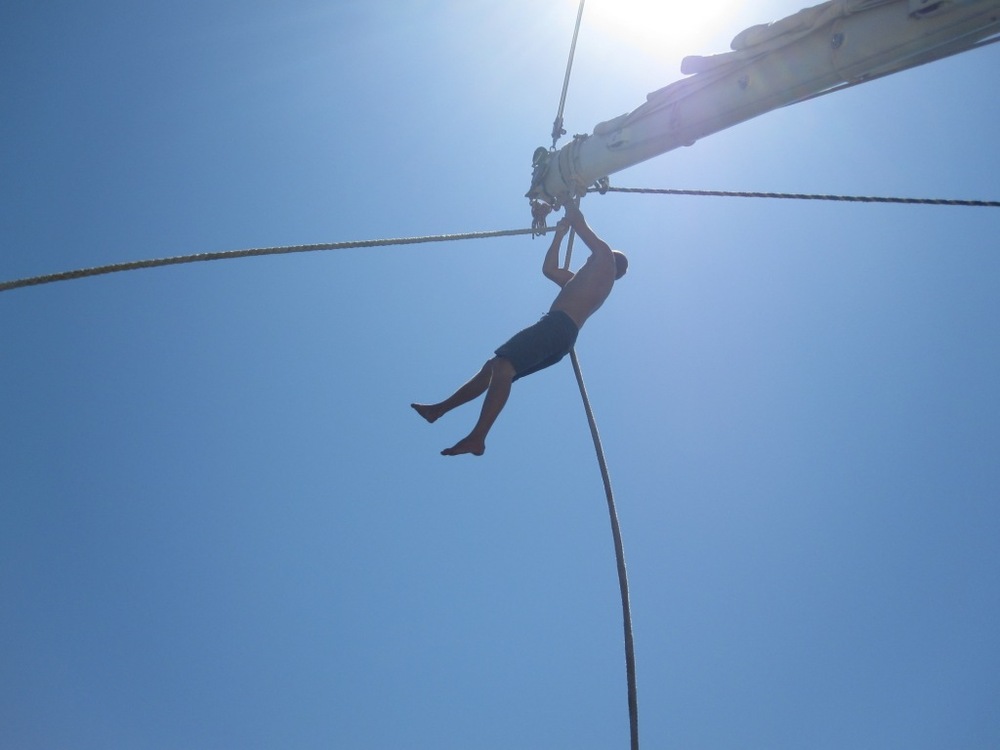 Hola amigos, and apologies for not knowing how to say that in Catalan. Progress, progress, progress aboard Argo todos dio with barely a wasted moment. In the morning, the final groundbreaking touches were put on a freshly published report from the distinguished team of Drs. Alex, Kyla, and Prof. Callie, concerning their research on various nutrient levels throughout the waters of the Western Mediterranean and how these waters were affected by human pollution, particularly in industrial ports. As soon as the presses ceased to roll, scientific disciplines were shifted, and our collective intellectual prowess turned towards physics. After throwing a few lines around topping the bejeezus out of the main and pulling its boom out 90 to port, we launched ourselves -pun very much so intended- into the study of the Argonaut aerodynamics of the boom swing and ensuing animal noises and gestures. Hasta manana amigos!